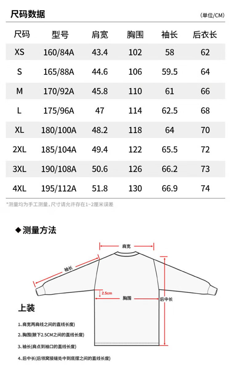 China (cm) 160-165/84-86 165-170 / 88-90 167-172 / 92-96 168-173 / 98-102 170-176 / 106-110