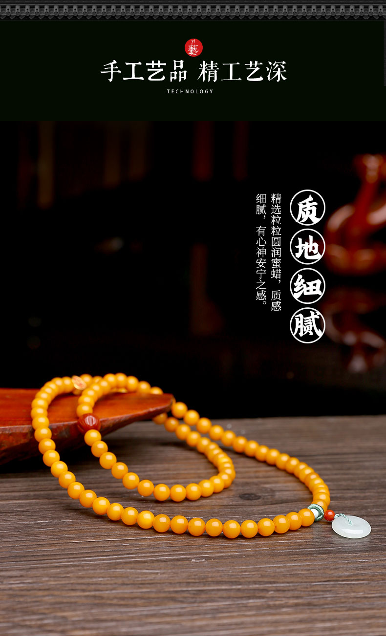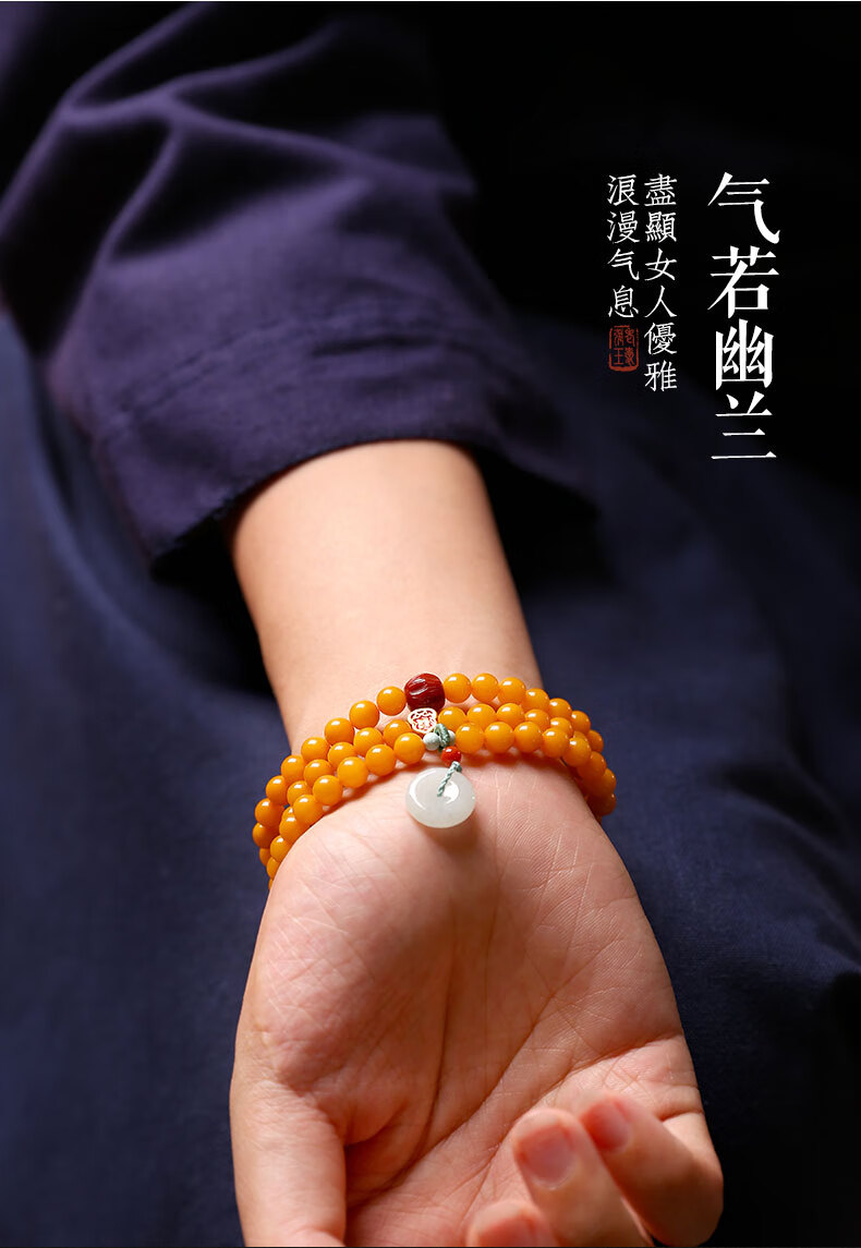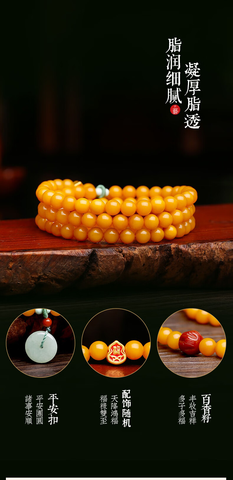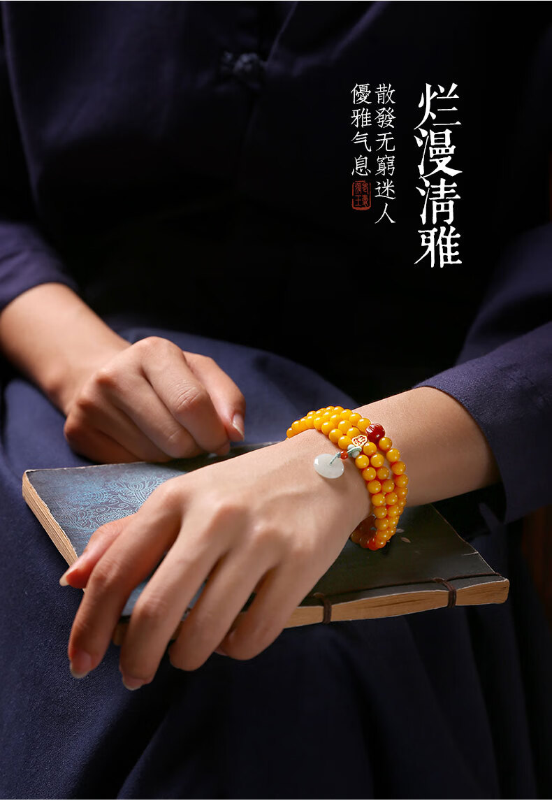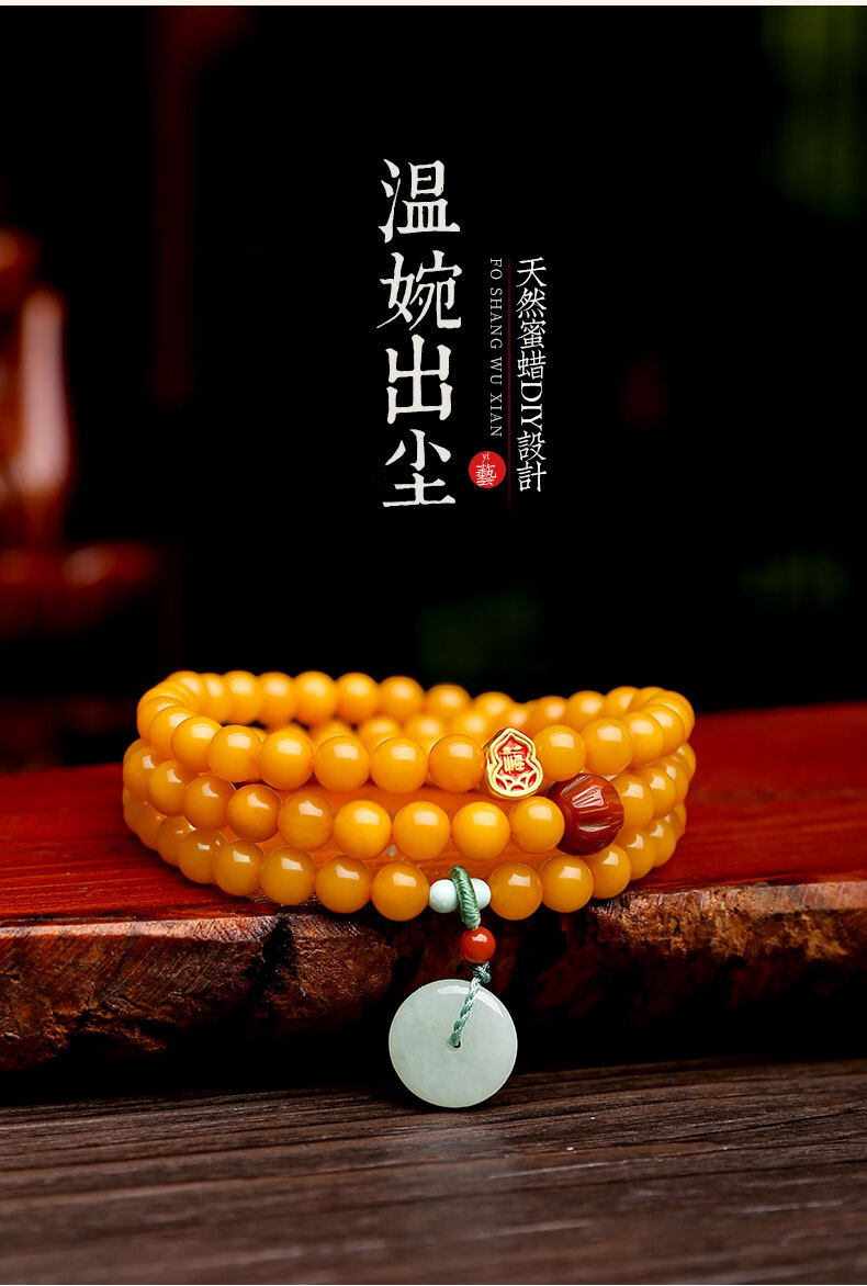 Mujue (MUJUE) beeswax bracelet for women with multiple circles DIY pure gold blessing gourd jade safety buckle chicken oil yellow bracelet to transport the year of birth