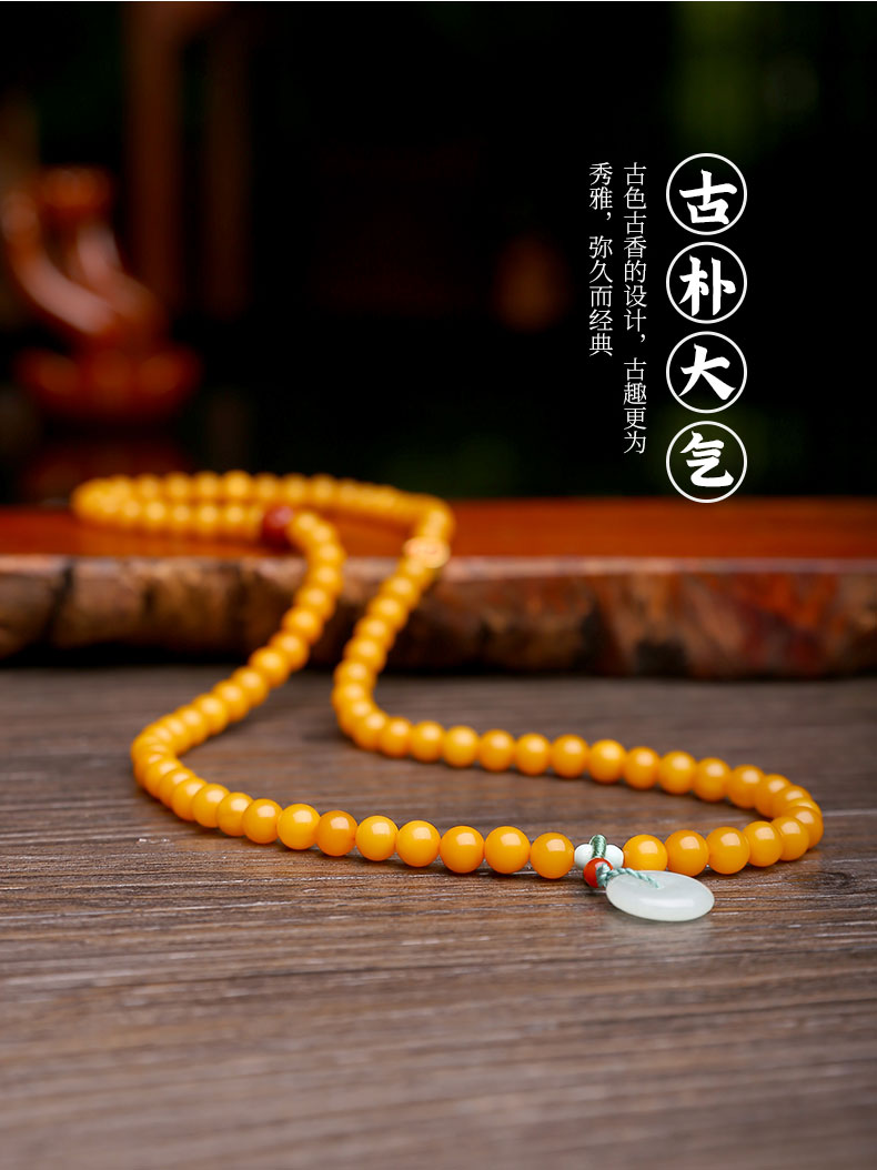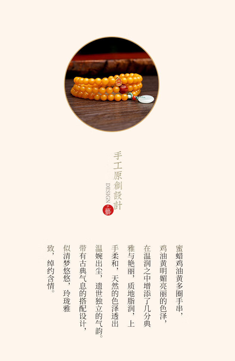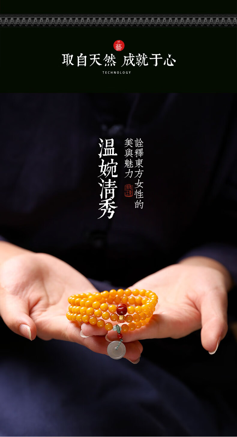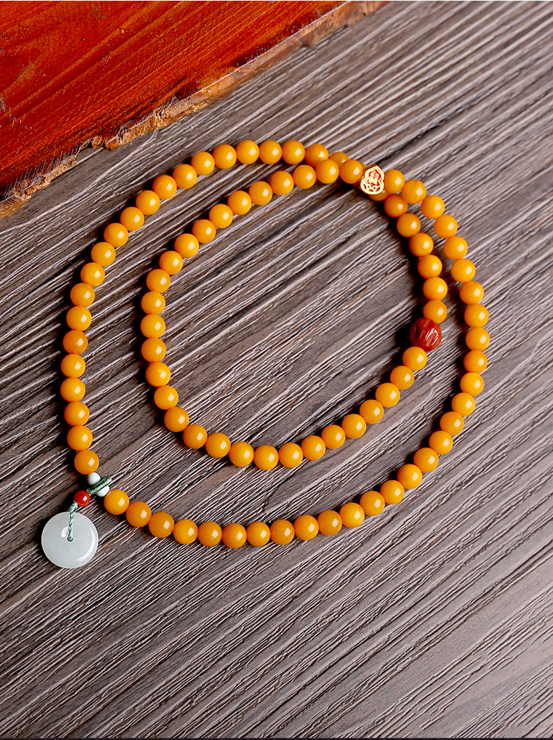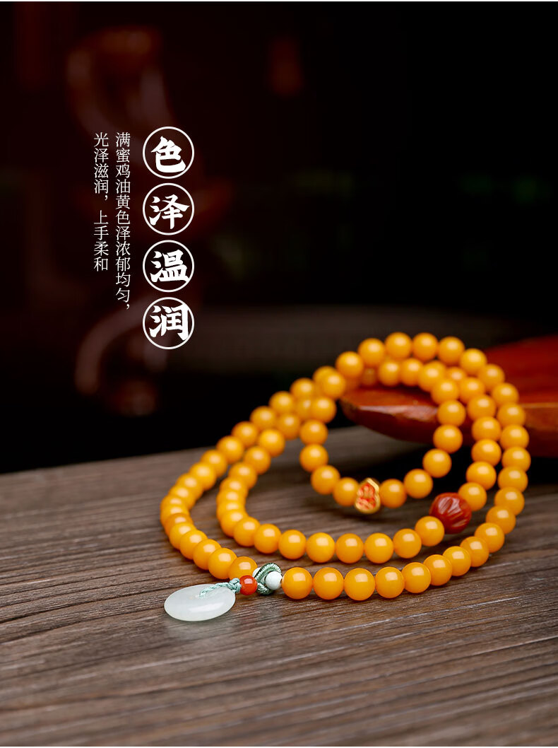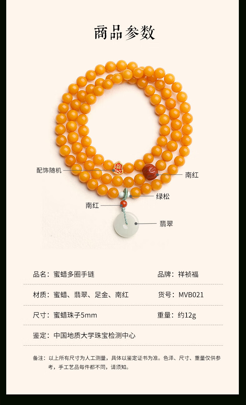 Mujue (MUJUE) beeswax bracelet for women with multiple circles DIY pure gold blessing gourd jade safety buckle chicken oil yellow bracelet to transport the year of birth