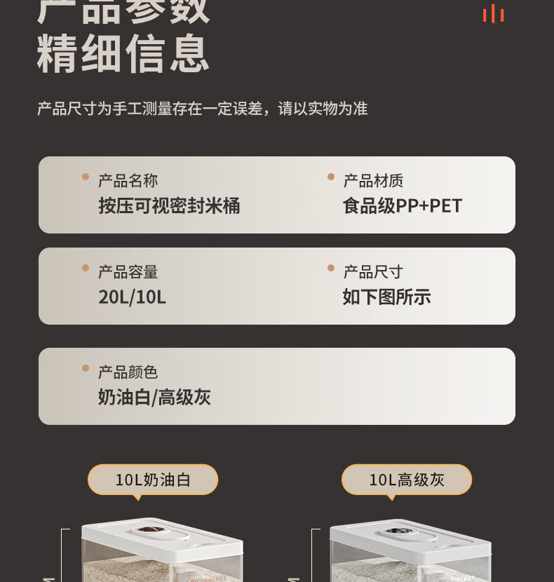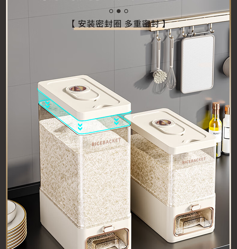 PAKCHOICE rice barrel rice storage container 10Jin Jin is equal to 0.5kg, packed with 2025 new insect-proof and moisture-proof household food-grade press rice storage box