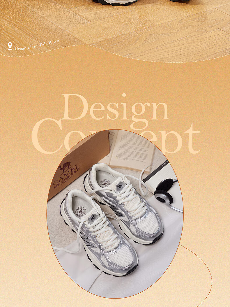 Camel (CAMEL) men's retro jogging thick-soled cushioning casual sports shoes K15CX4L4027 silver/slate gray 42