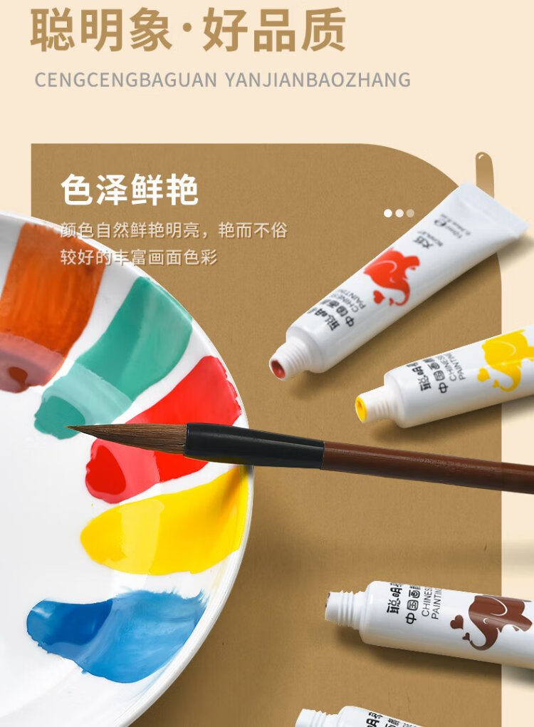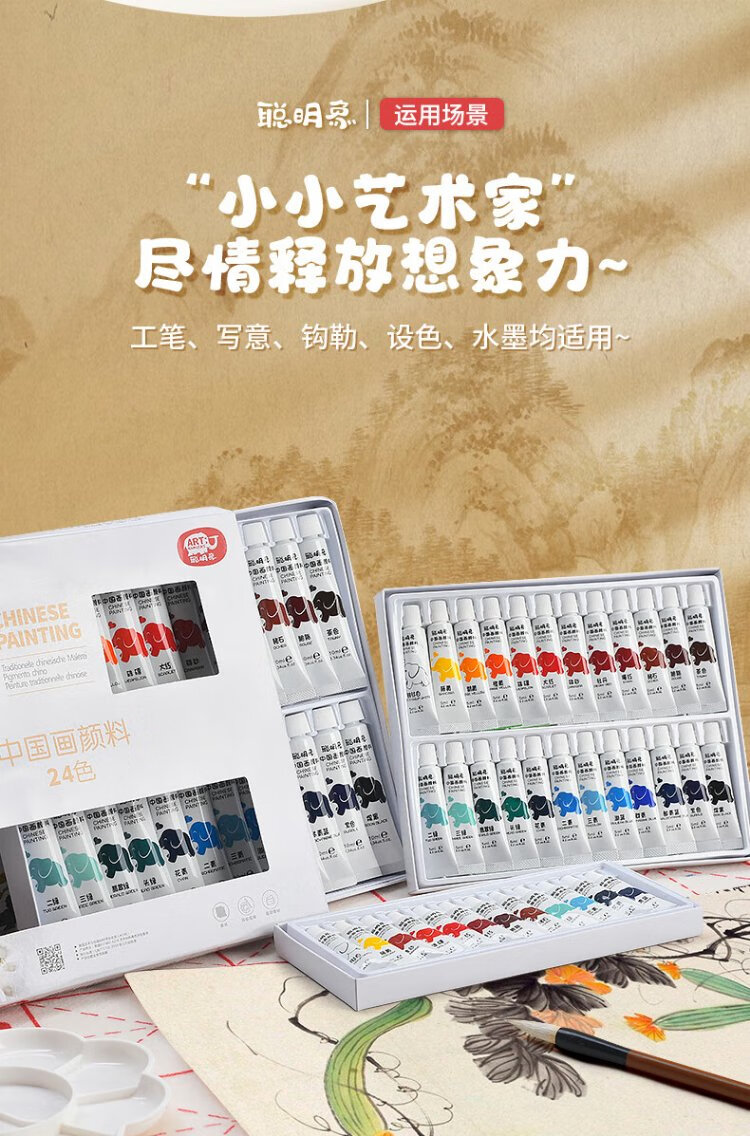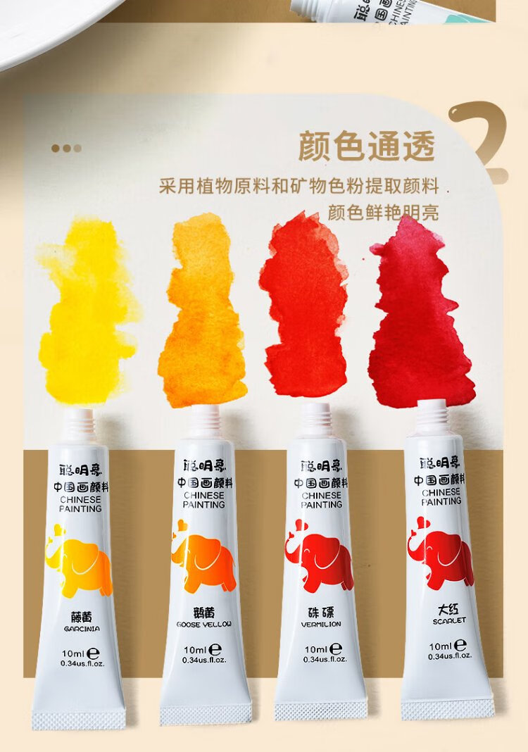 Smart Elephant Chinese Painting Pigments Beginner Set 24 Colors 5ml Children Elementary School Junior High School Entry Tools Chinese Painting Meticulous Brushwork Landscape Painting Ink Painting Painting With Toolbox-10 Piece Set