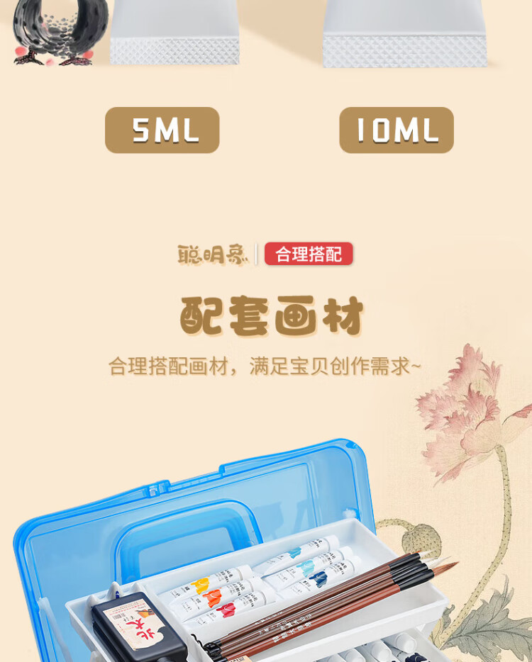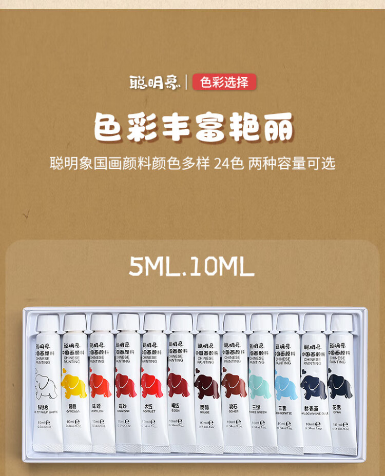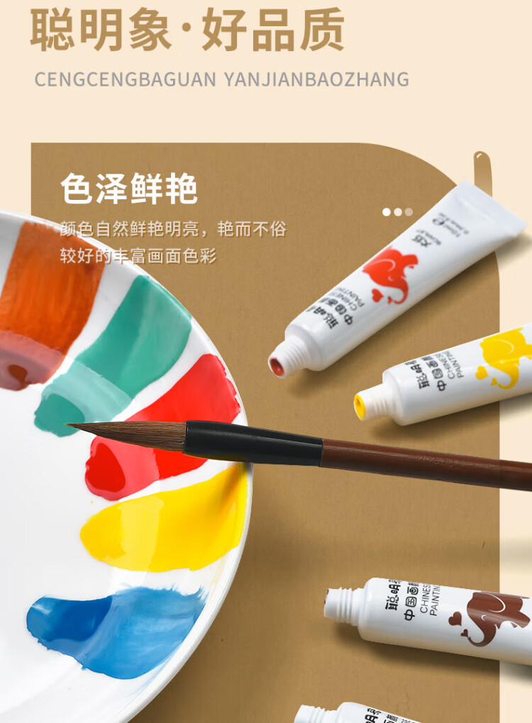 Smart Elephant Chinese Painting Pigments Beginner Set 12 Colors 5ml Children Elementary School Junior High School Entry Tools Chinese Painting Meticulous Brushwork Landscape Painting Ink Painting Painting With Toolbox-10 Piece Set