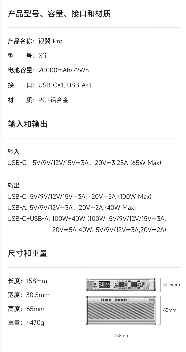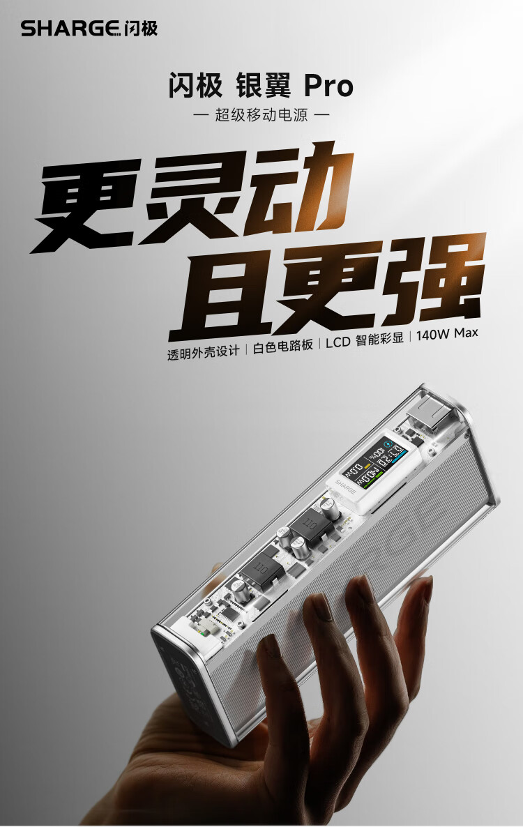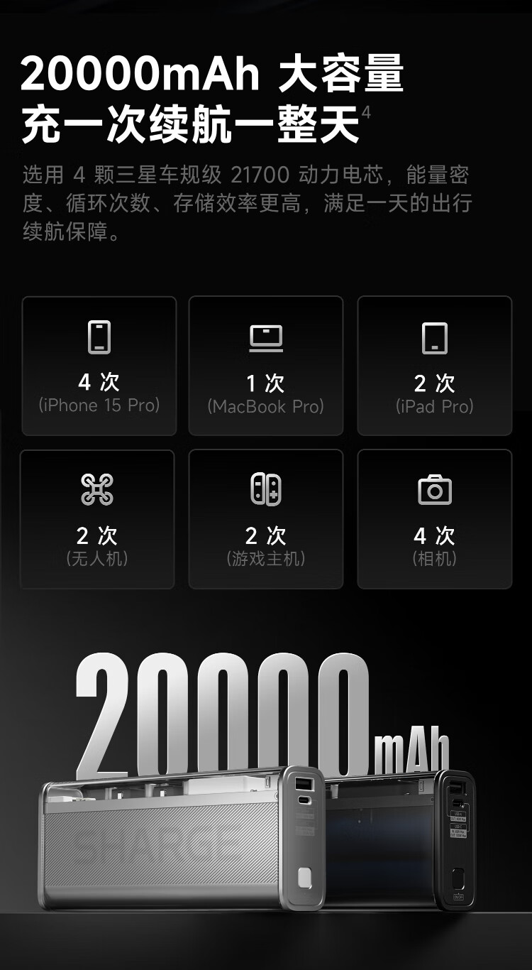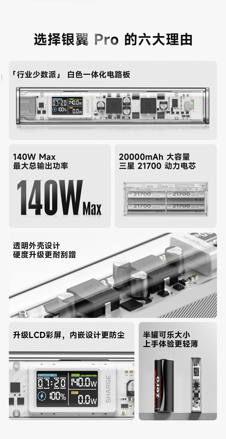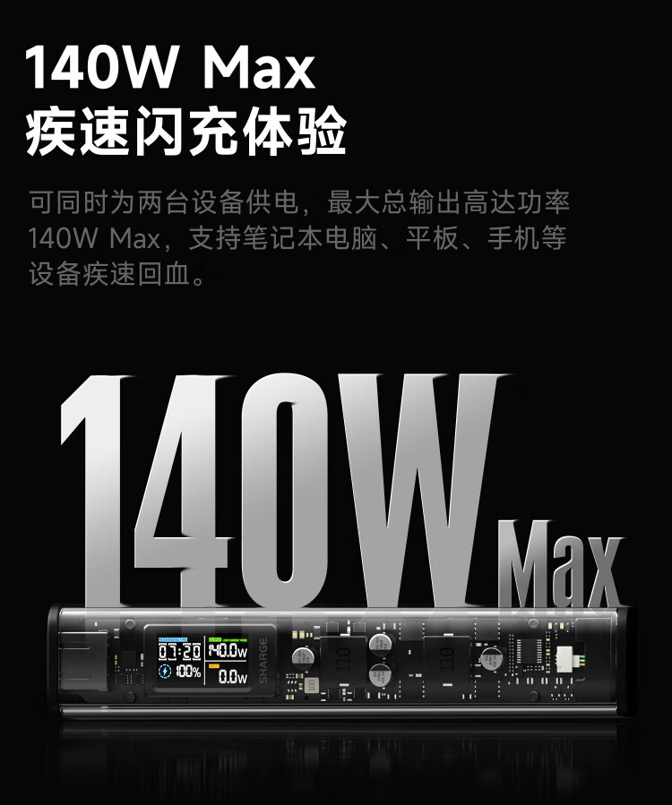 Sharge's new 3C certification 140W Silver Wing new fast charging notebook power bank 20000 mAh large capacity mobile power supply can be used on airplanes and is suitable for Apple 17 mobile phones and tablets