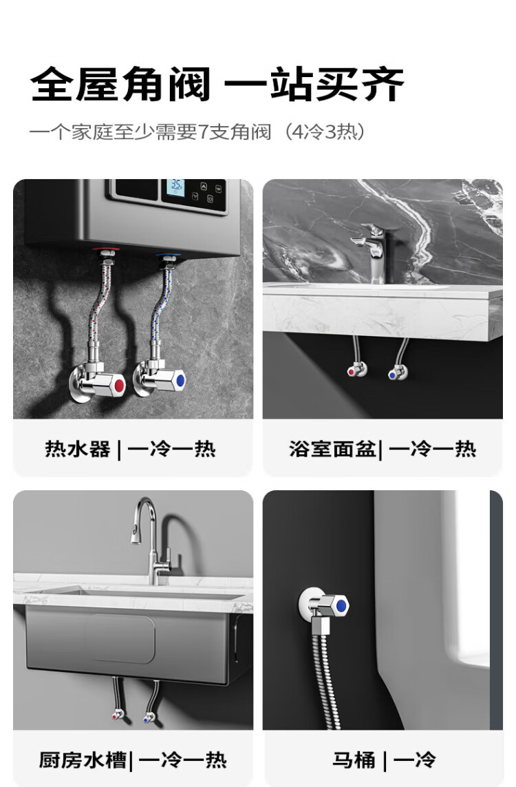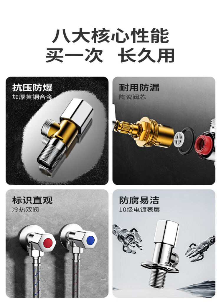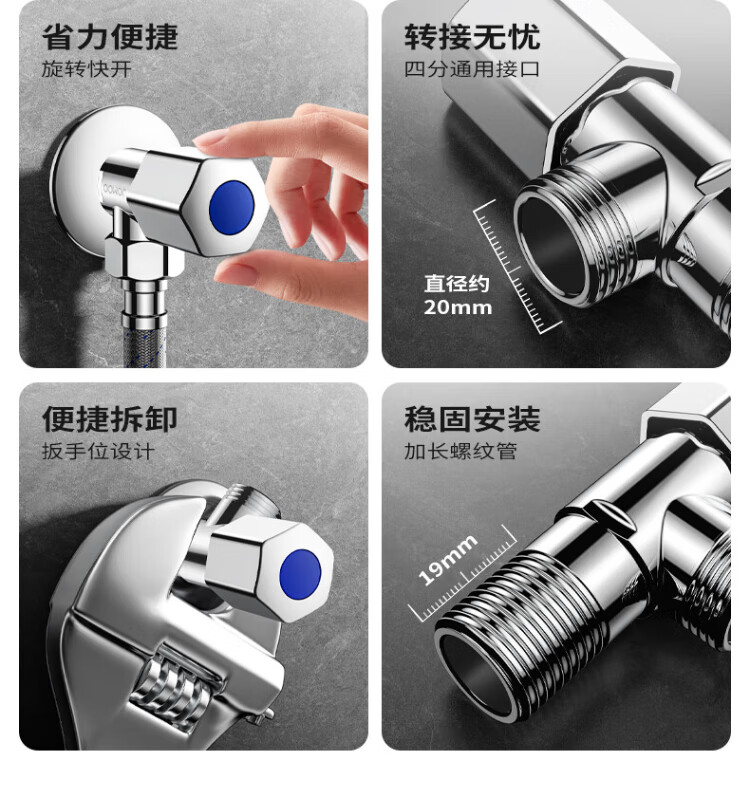 JOMOO fine copper thickened angle valve 4-point ceramic valve core hot and cold universal single-pack cold water valve 74055