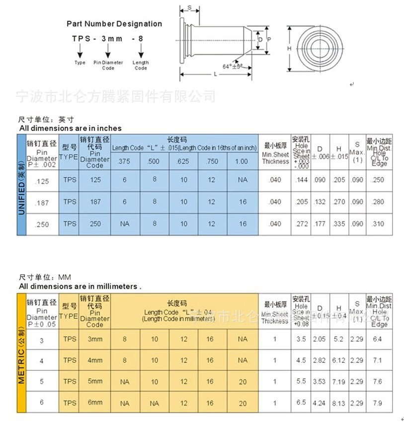 Fangteng stainless steel TPS guide pin 2.53456 positioning pin pressure riveting pin cylindrical pin pressure riveting pin 10 pieces TPS-M3*16