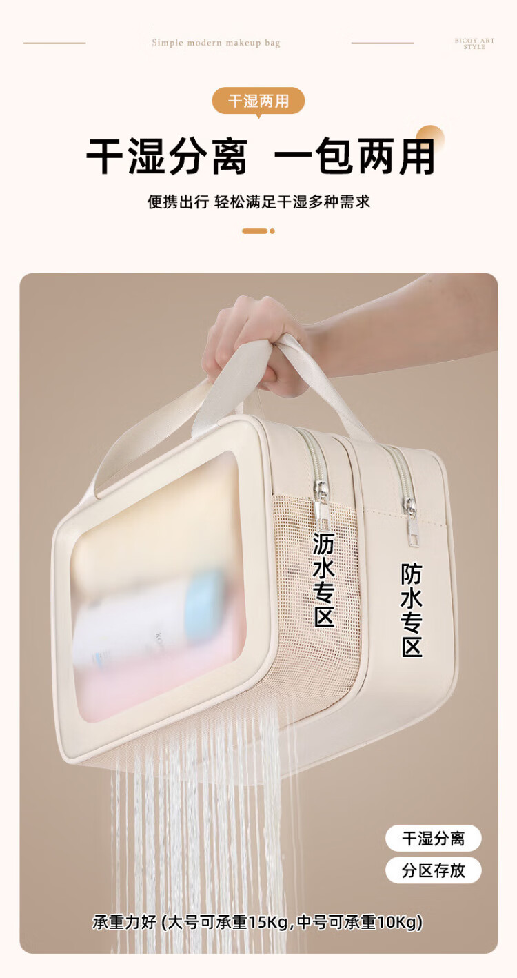 OMANTI toiletry bag dry and wet separation portable large capacity drain double layer cosmetic bag travel toiletries organizing cosmetic bag