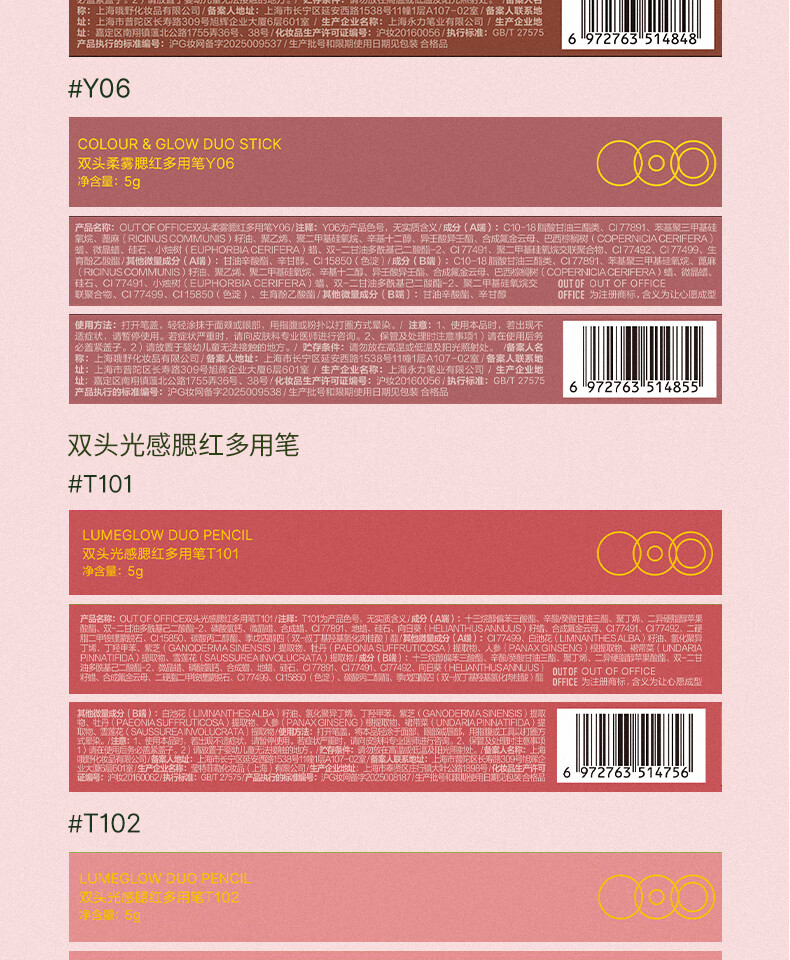 OUT-OF-OFFICE Double-ended Blush Contouring Pen, Brightening the face, natural expansion and contraction, OOO Blush Pen, watery atmosphere T101