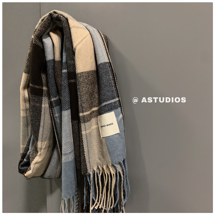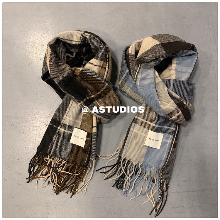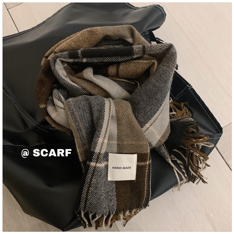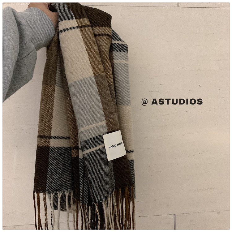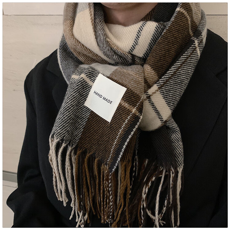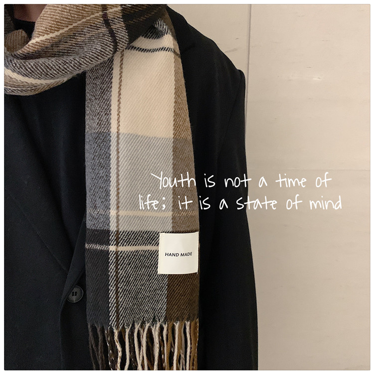 Memaru scarf men's winter Korean style versatile student warm fashion personality trendy men's scarf Korean style plaid warm simple gray coffee