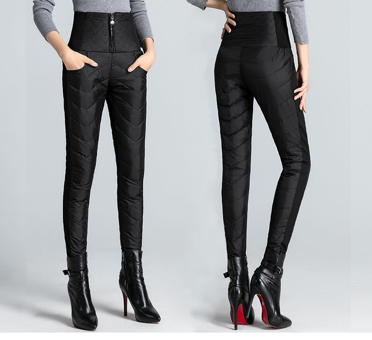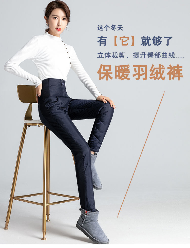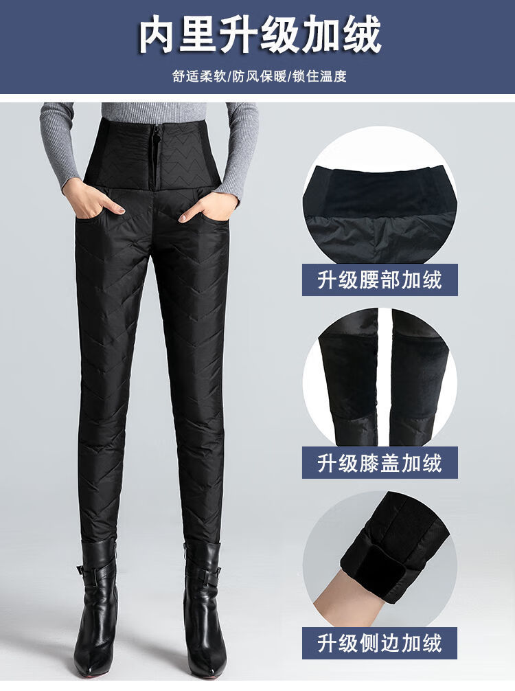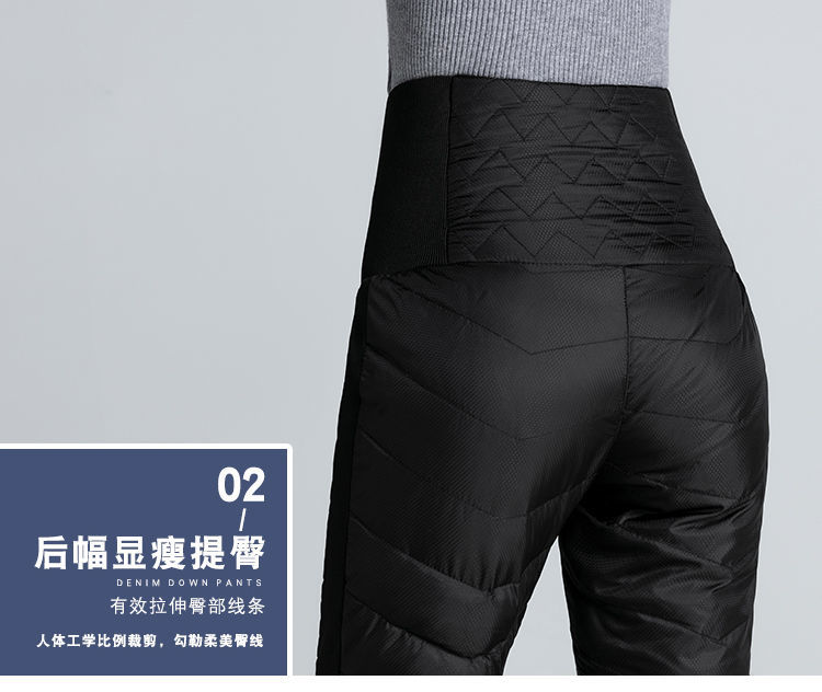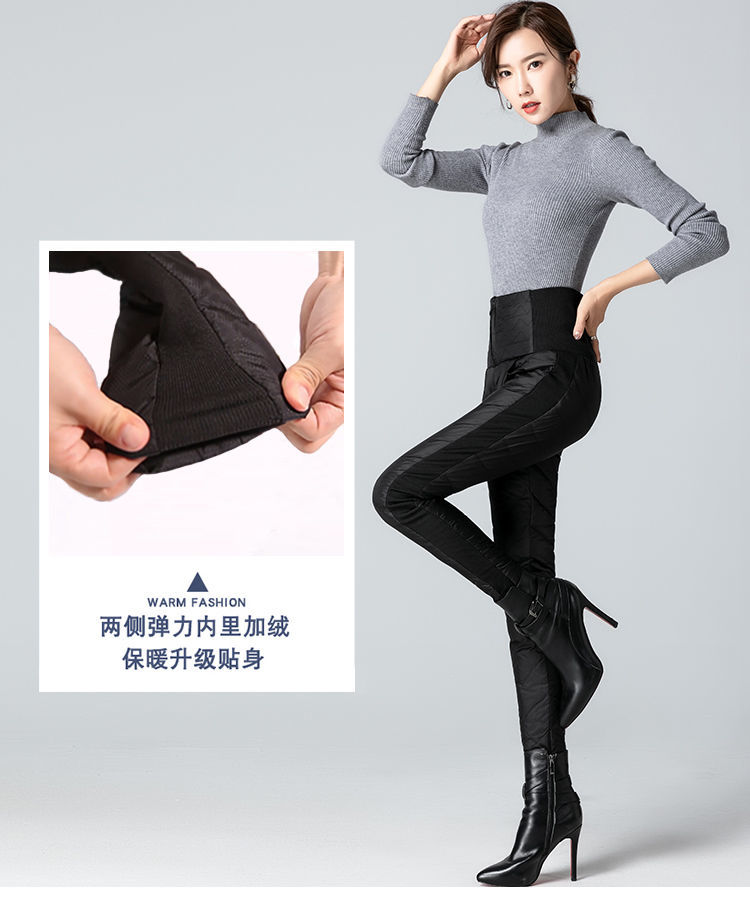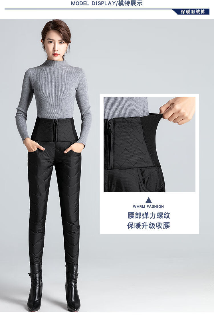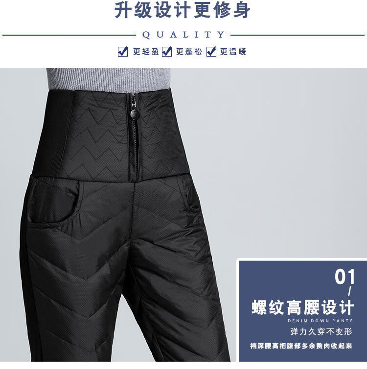 NY-RCE Down Pants Women's Outerwear Thickened High Waist Fashion White Duck Down Slim Foot Warm Cotton Pants Women Winter Black M 90-100Jin Jin is equal to 0.5 kg