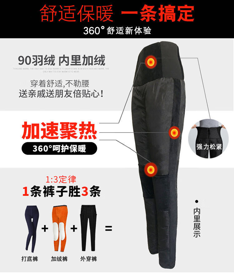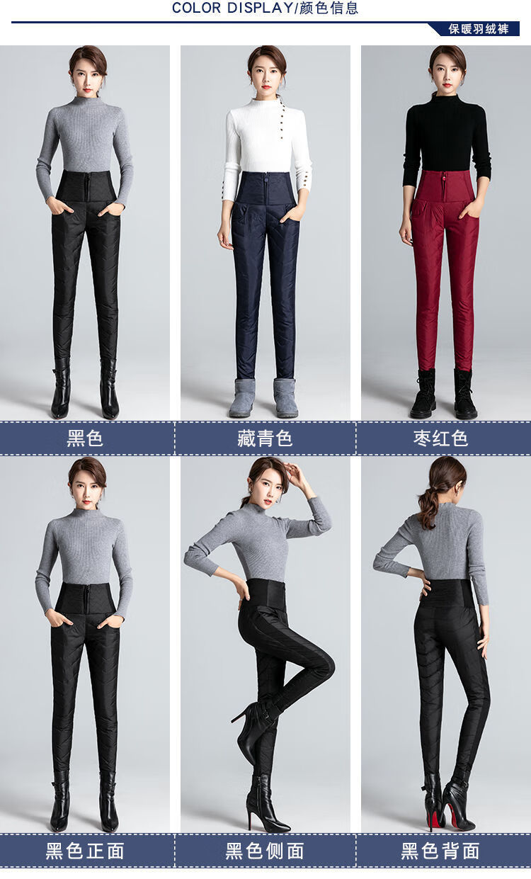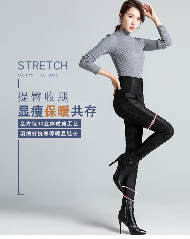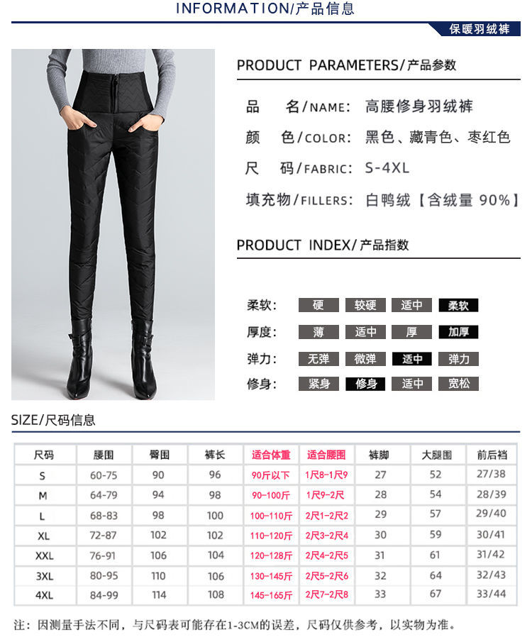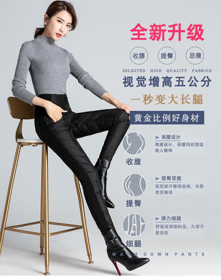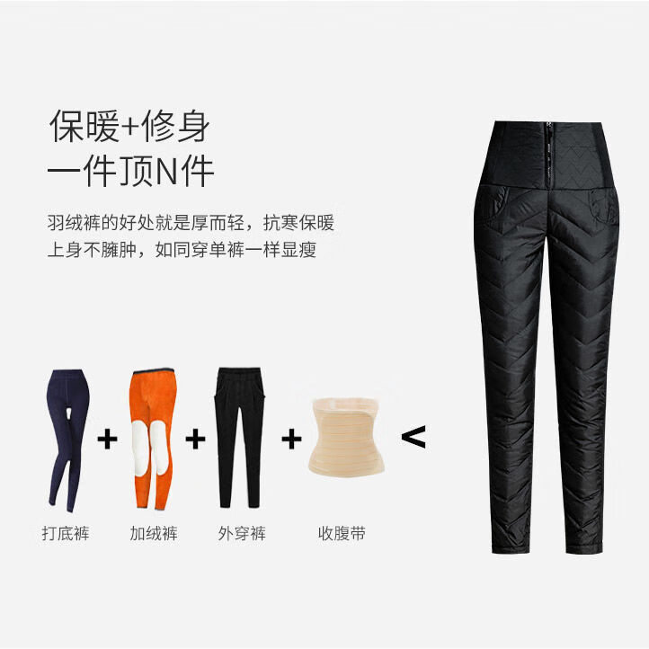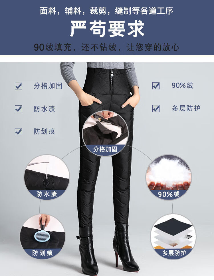 NY-RCE Down Pants Women's Outerwear Thickened High Waist Fashion White Duck Down Slim Foot Warm Cotton Pants Women Winter Black M 90-100Jin Jin is equal to 0.5 kg