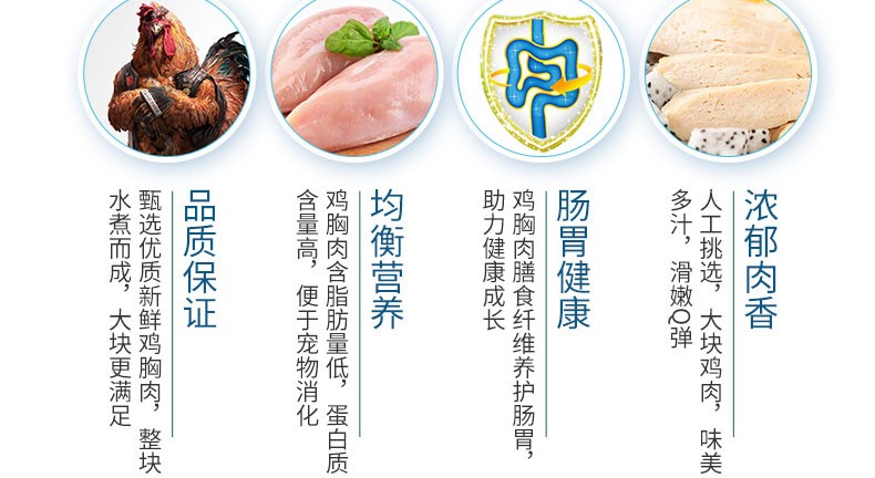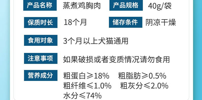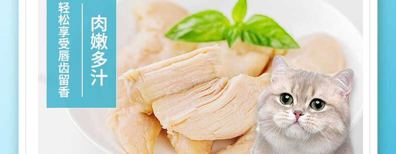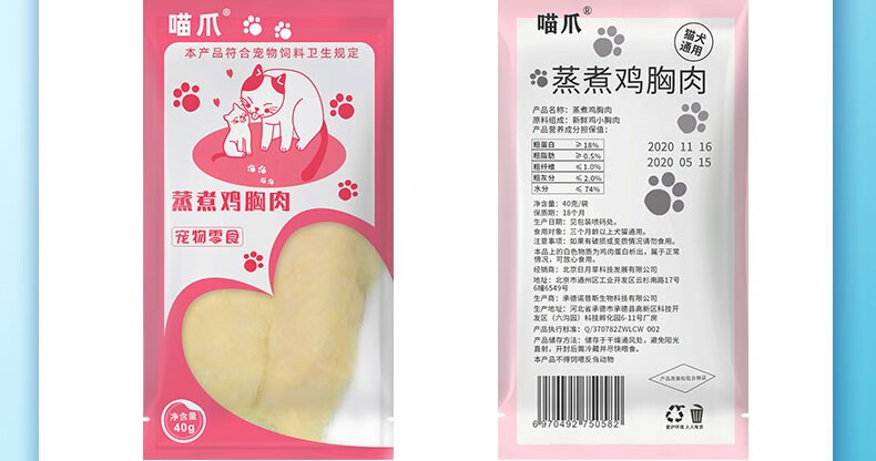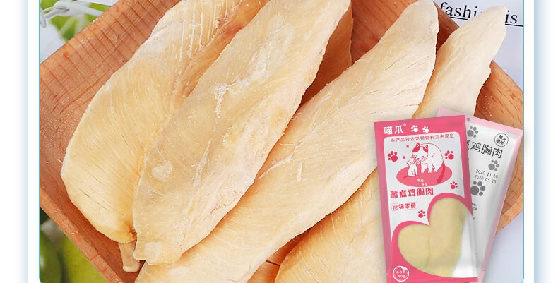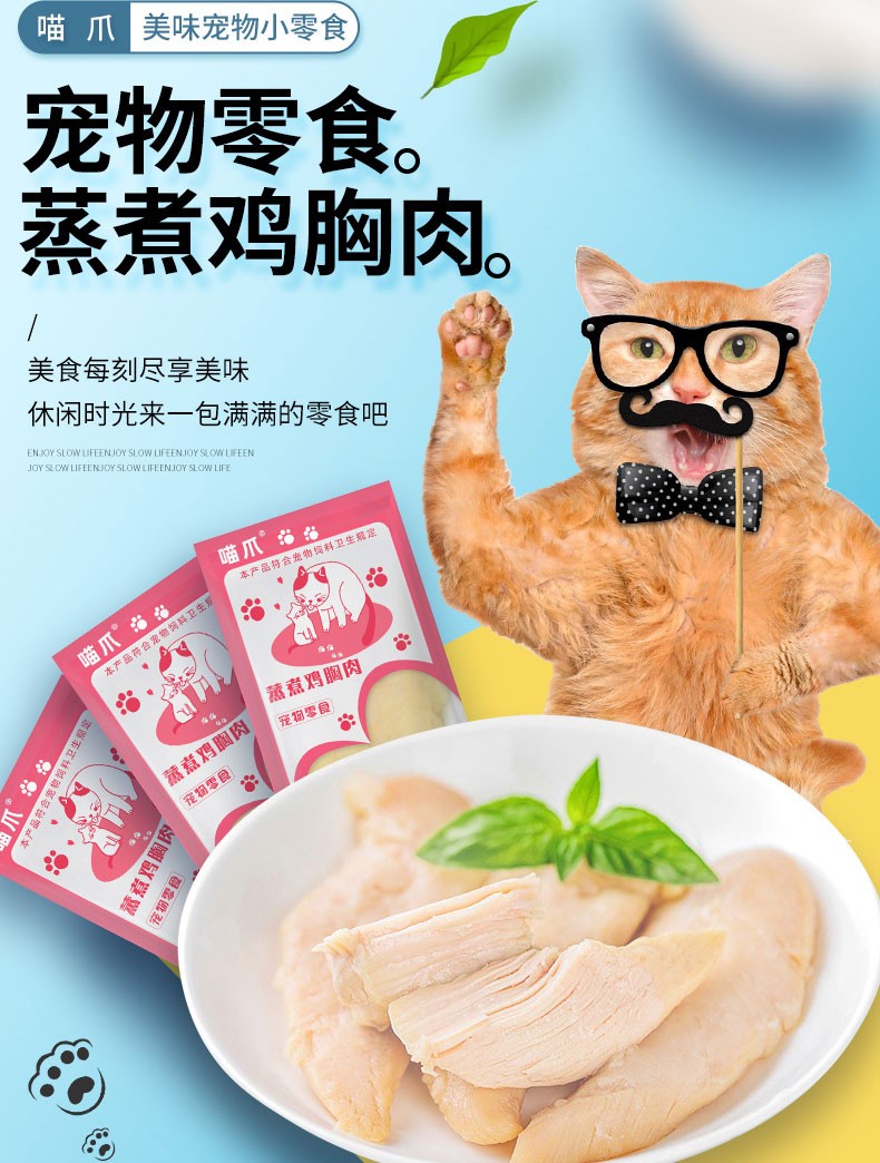 Meow Cat Snacks: Boiled Chicken Breast, moisturizing the intestines, strengthening the stomach and aiding digestion. Steamed Chicken Breast 40g*10 bags