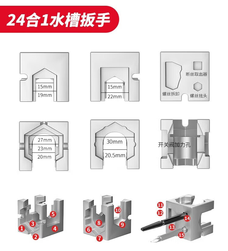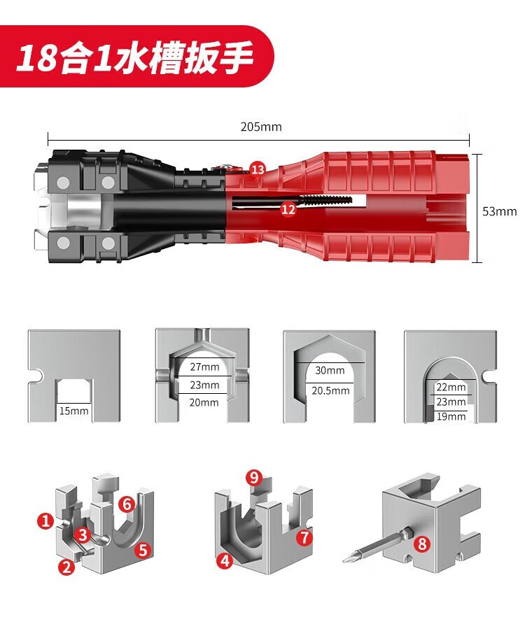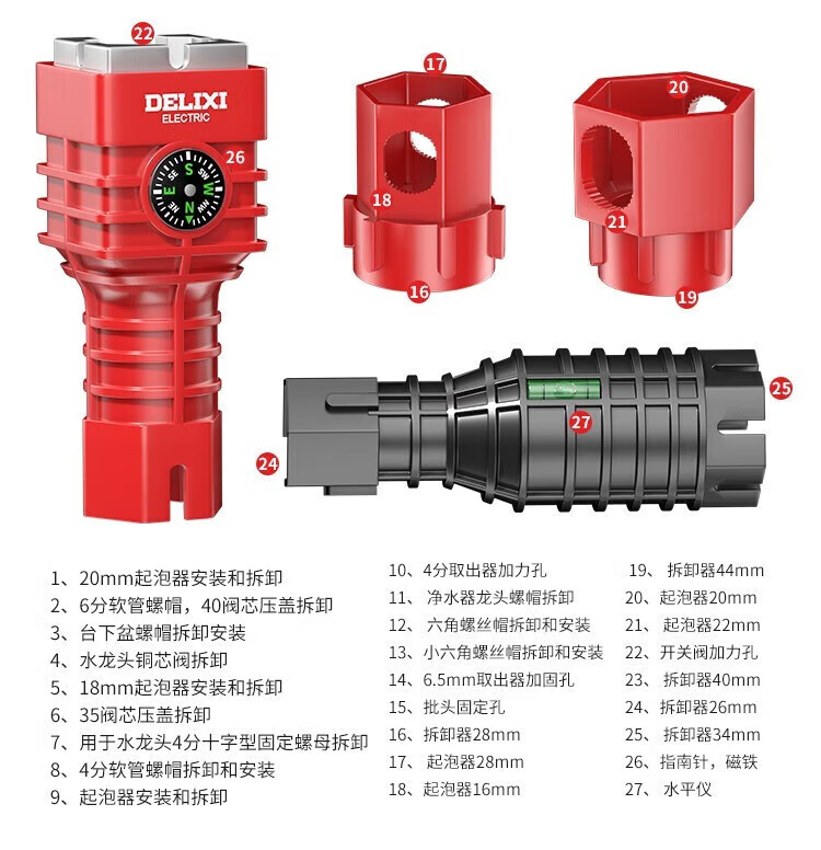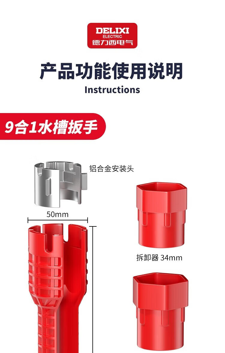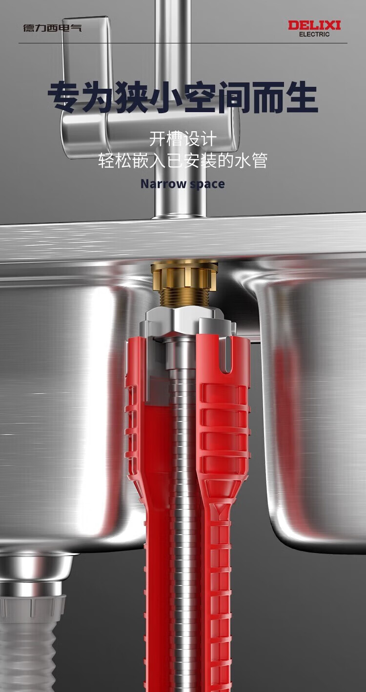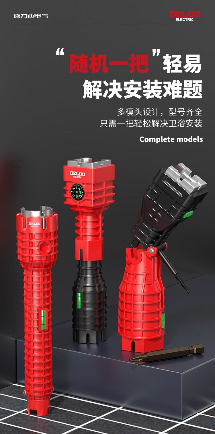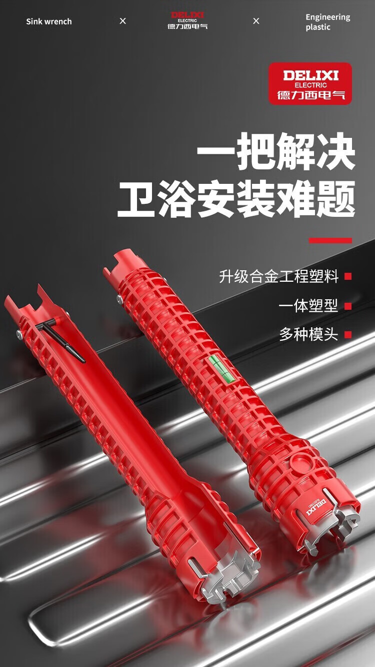 Delixi electrical sink wrench bathroom artifact multi-functional wrench faucet water pipe installation tool 8-in-1 with adjustable wrench
