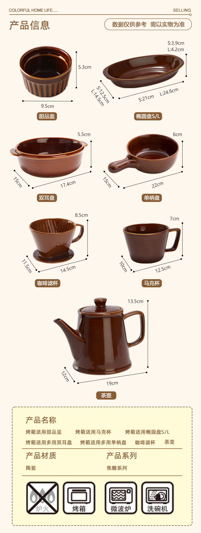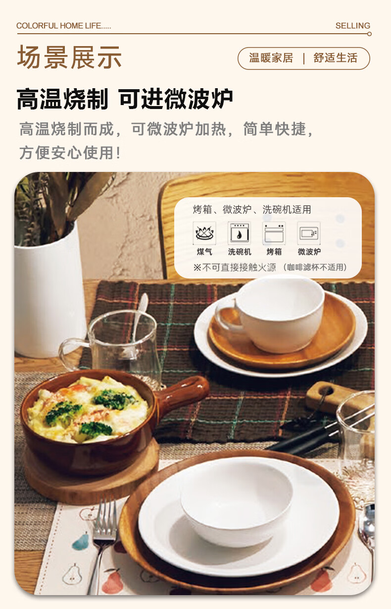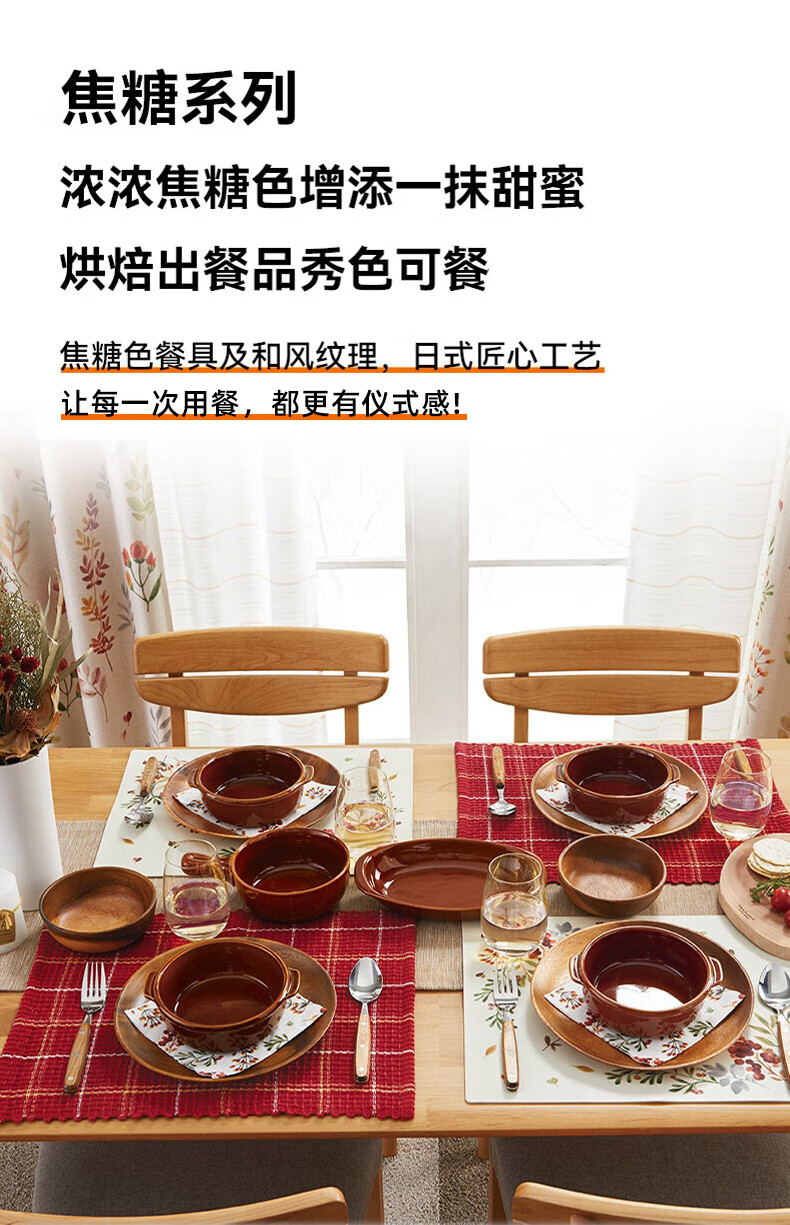 NITORI Yideli home kitchen tableware teapot large mouth plate oven baking pan suitable for multi-purpose single handle plate caramel series multi-purpose double ear plate