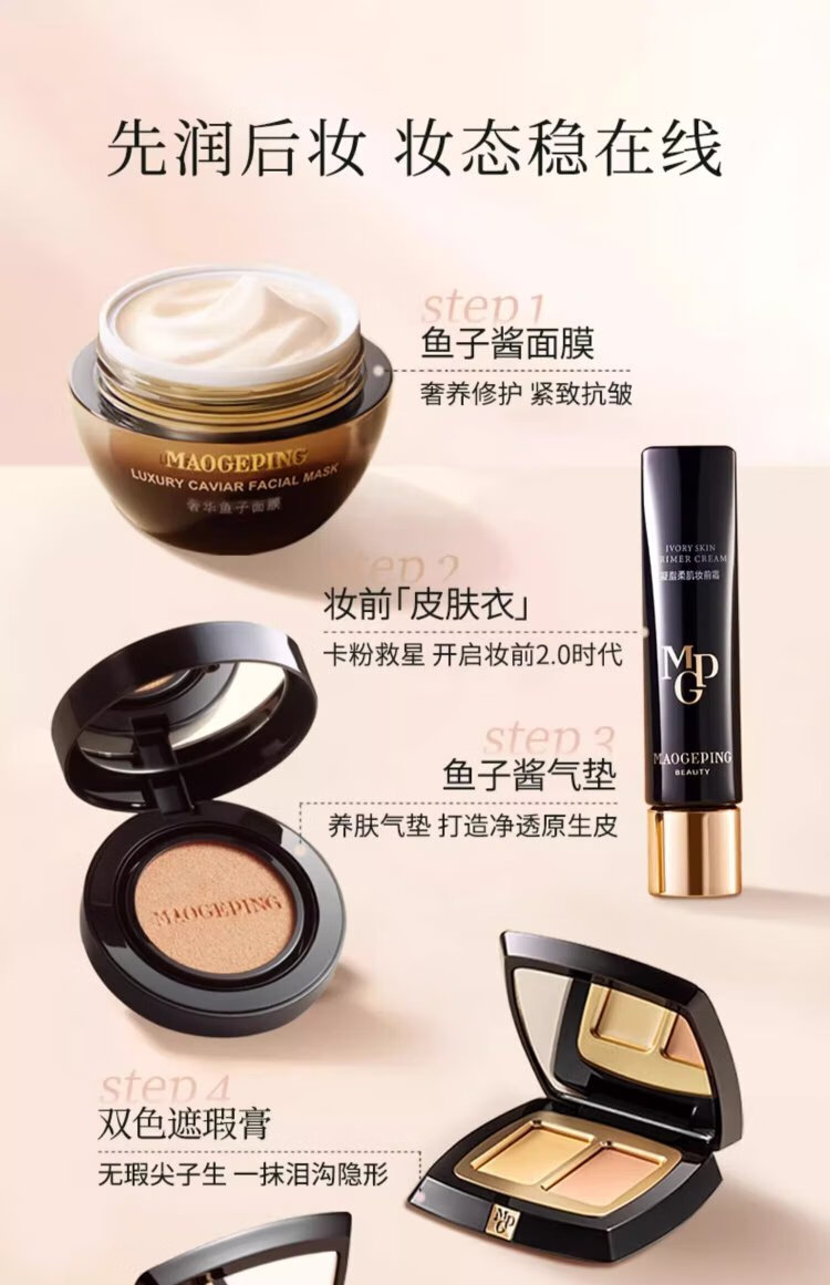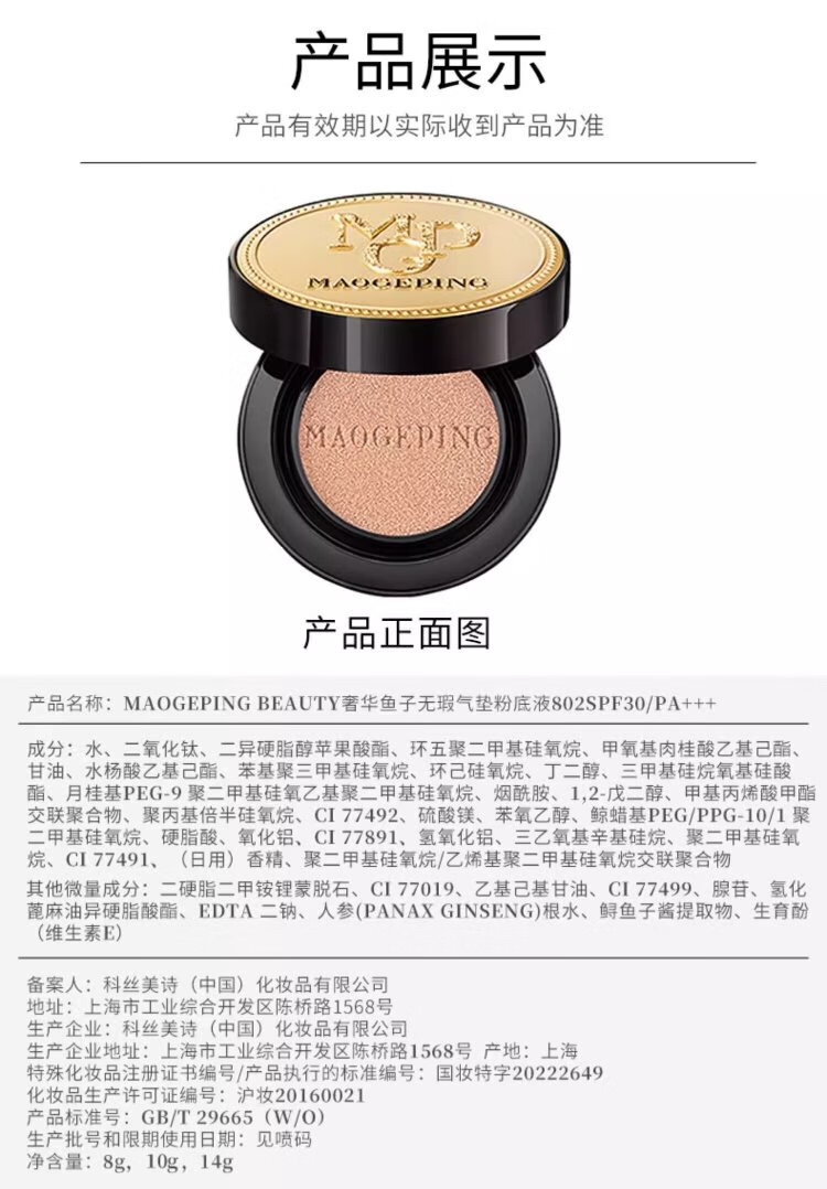Mao Geping Caviar Cushion Foundation 802 Natural Skin Color 14g + 14g Concealer Oil Control BB Cream Birthday Gift for Girlfriend