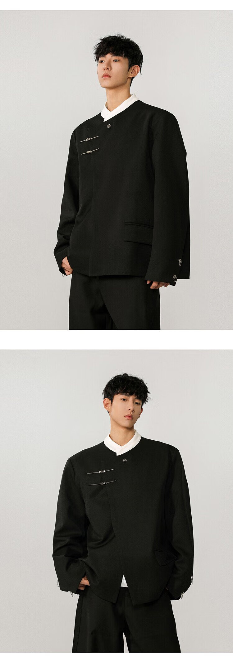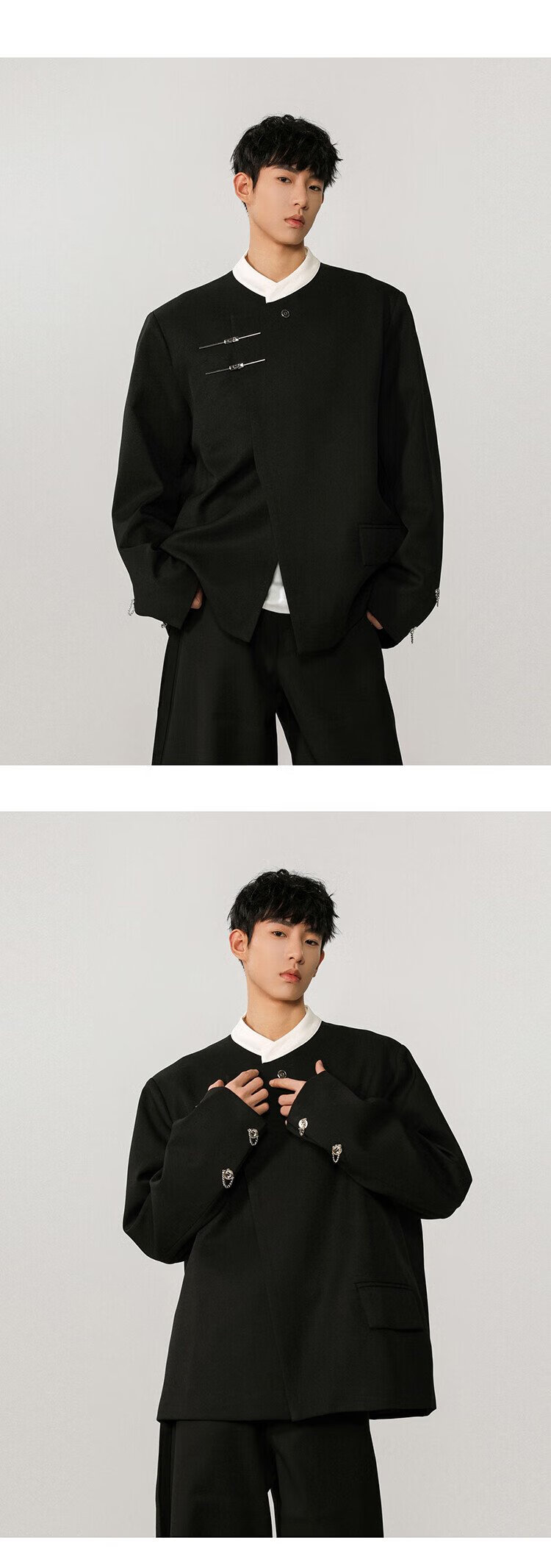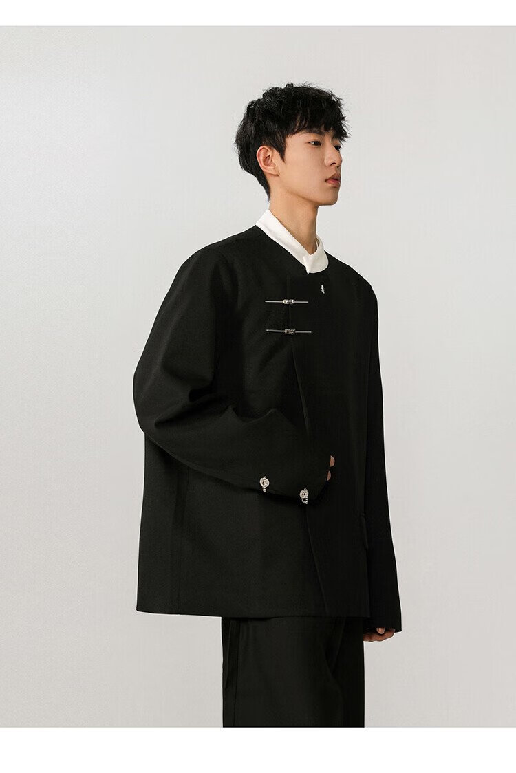 IZEXX new Chinese style national style stand collar tunic suit niche high-end suit jacket men's JM77 black XL
