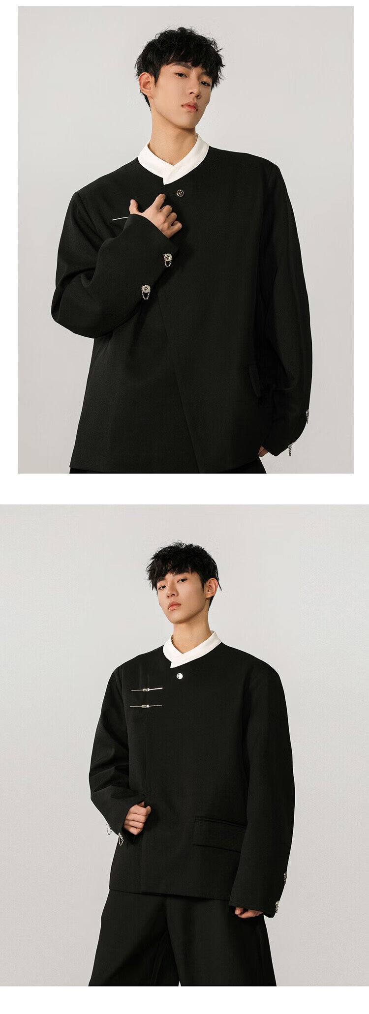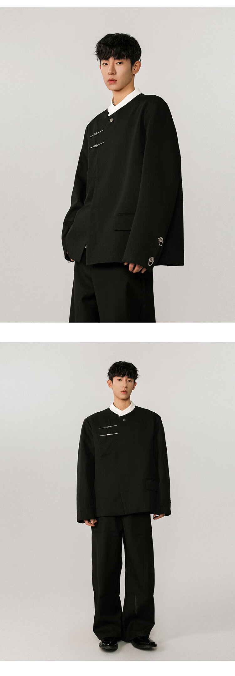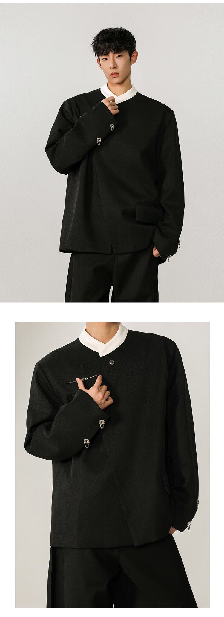 IZEXX new Chinese style national style stand collar tunic suit niche high-end suit jacket men's JM77 black XL