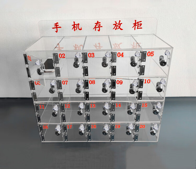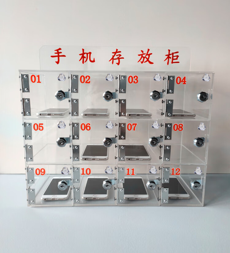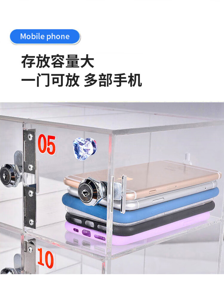 Mesu Juhong Acrylic Cell Phone Storage Cabinet Transparent Storage Box Workshop Cell Phone Storage Cabinet Staff Factory Cell Phone Storage Box with Lock 9 Cells Single Cell 10*10*19CM