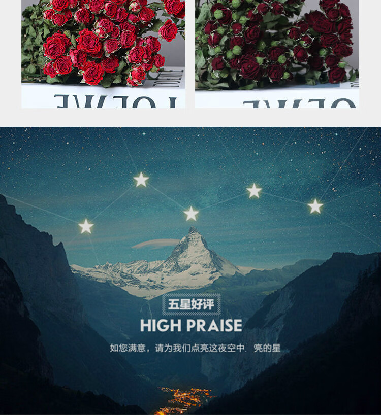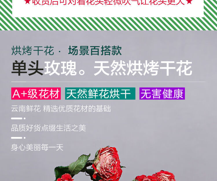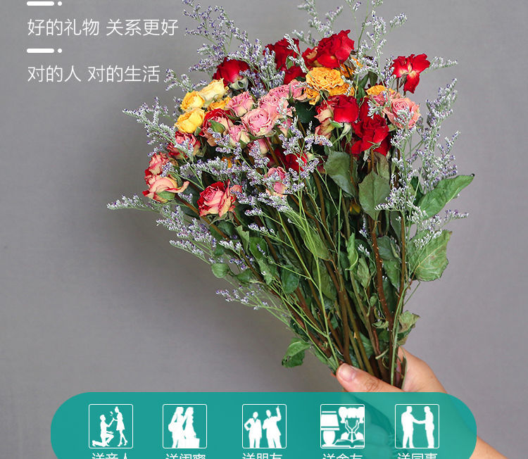 AIMAN Chinese Valentine's Day gift Yunnan multi-head dried rose bouquet rose gift shooting props decoration real flowers 10 pieces of single head treasure and a bouquet with flowers