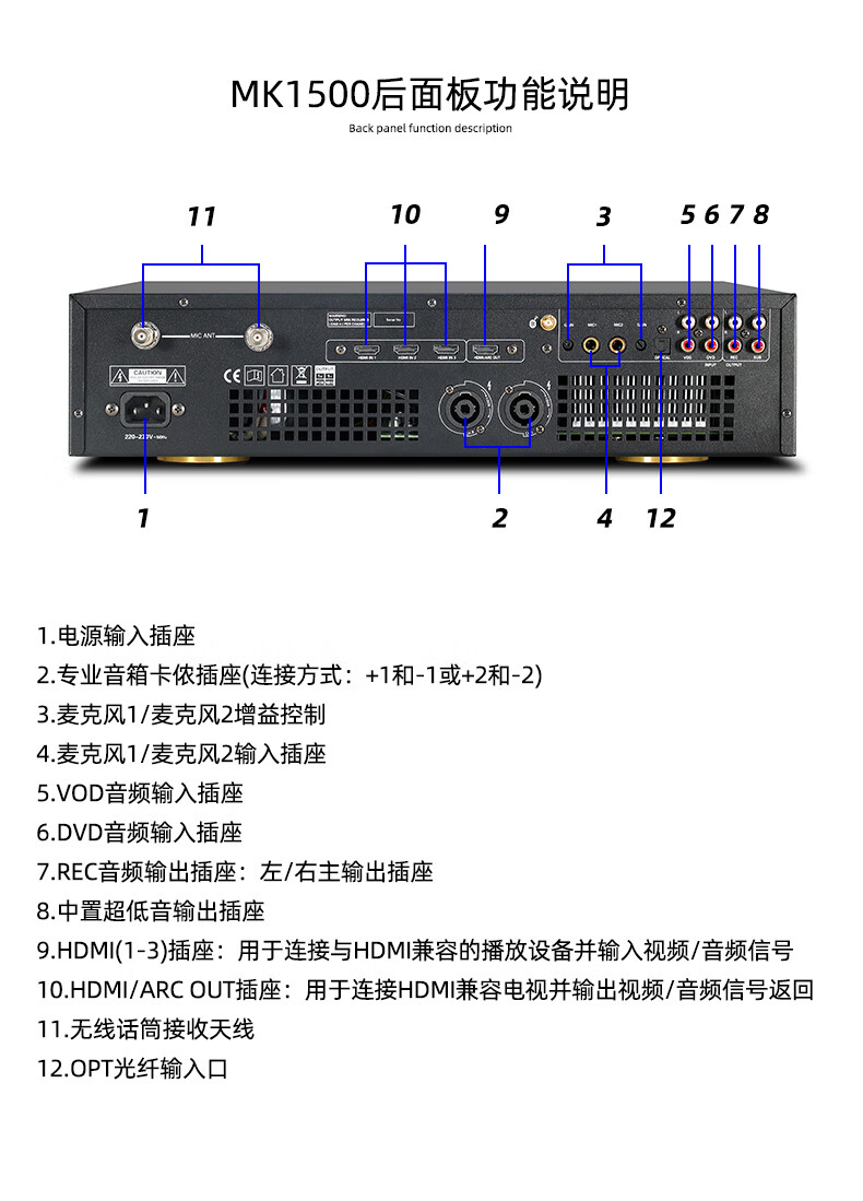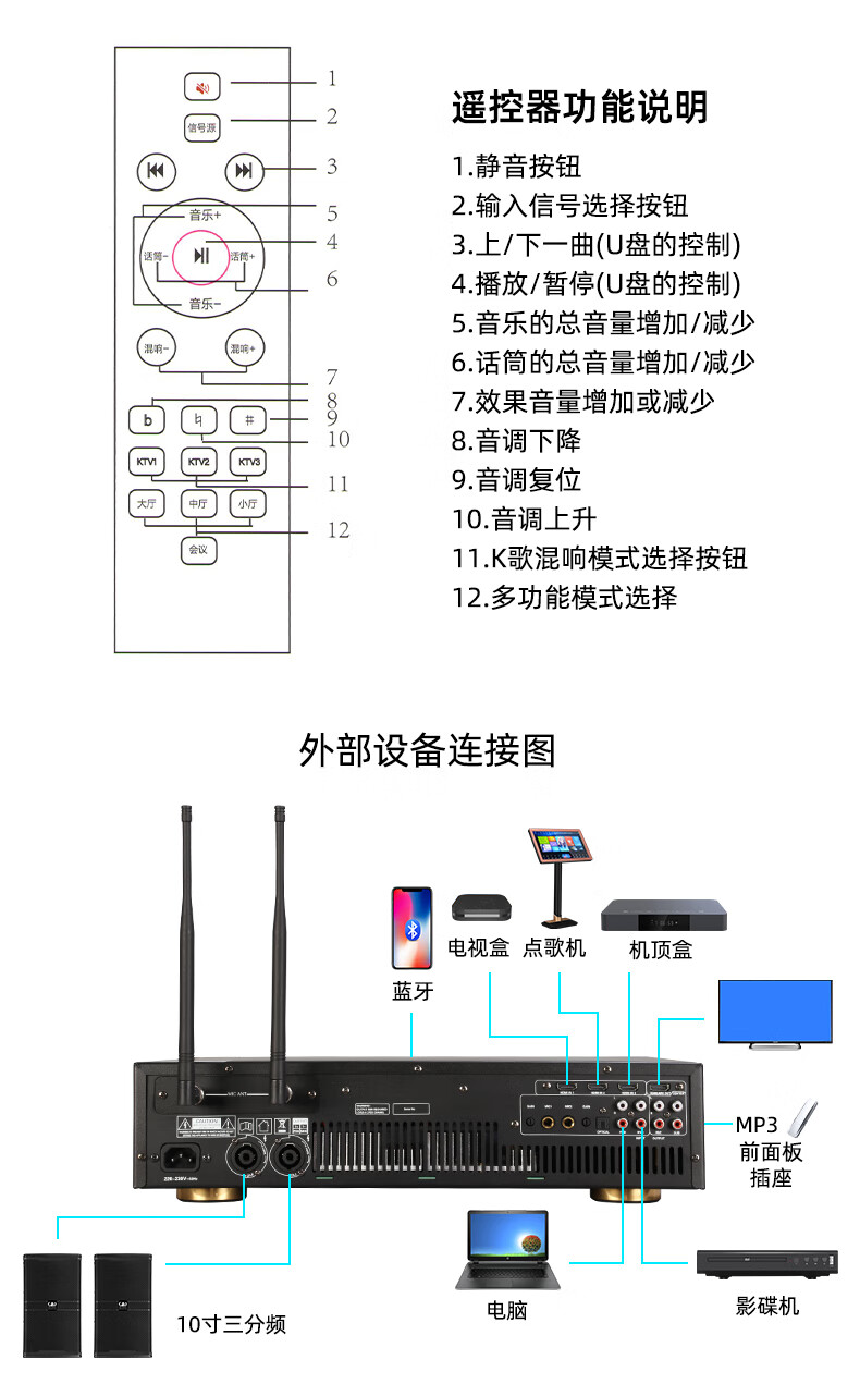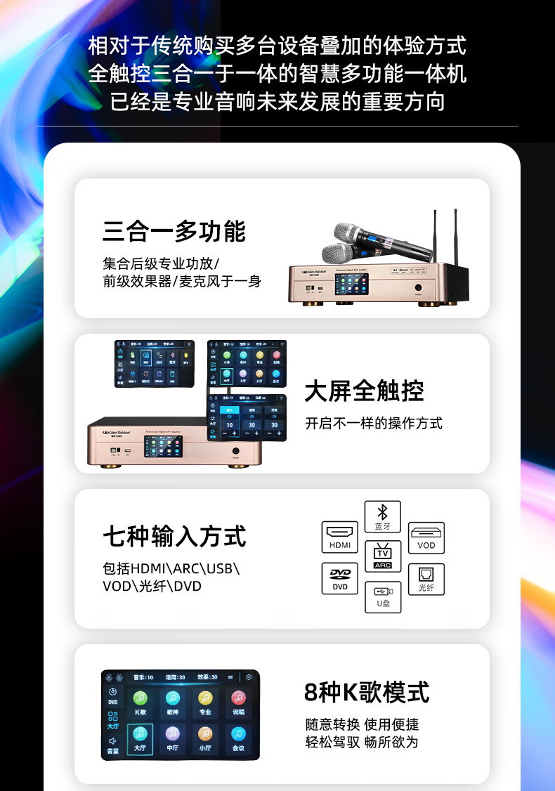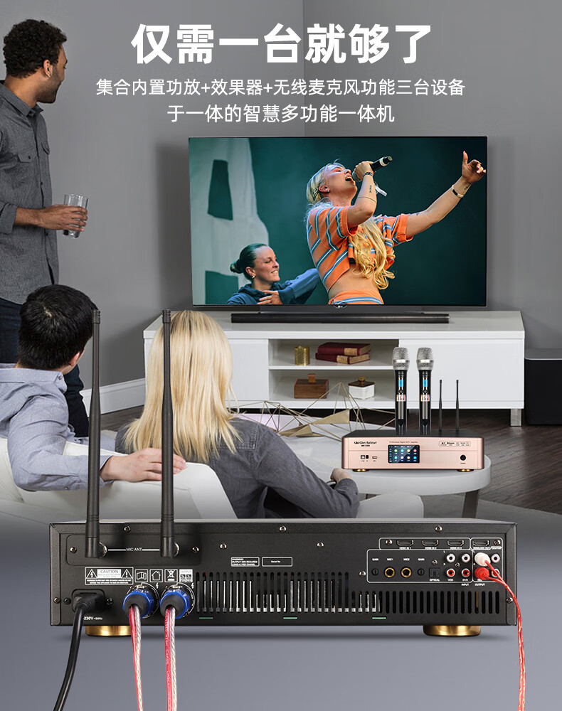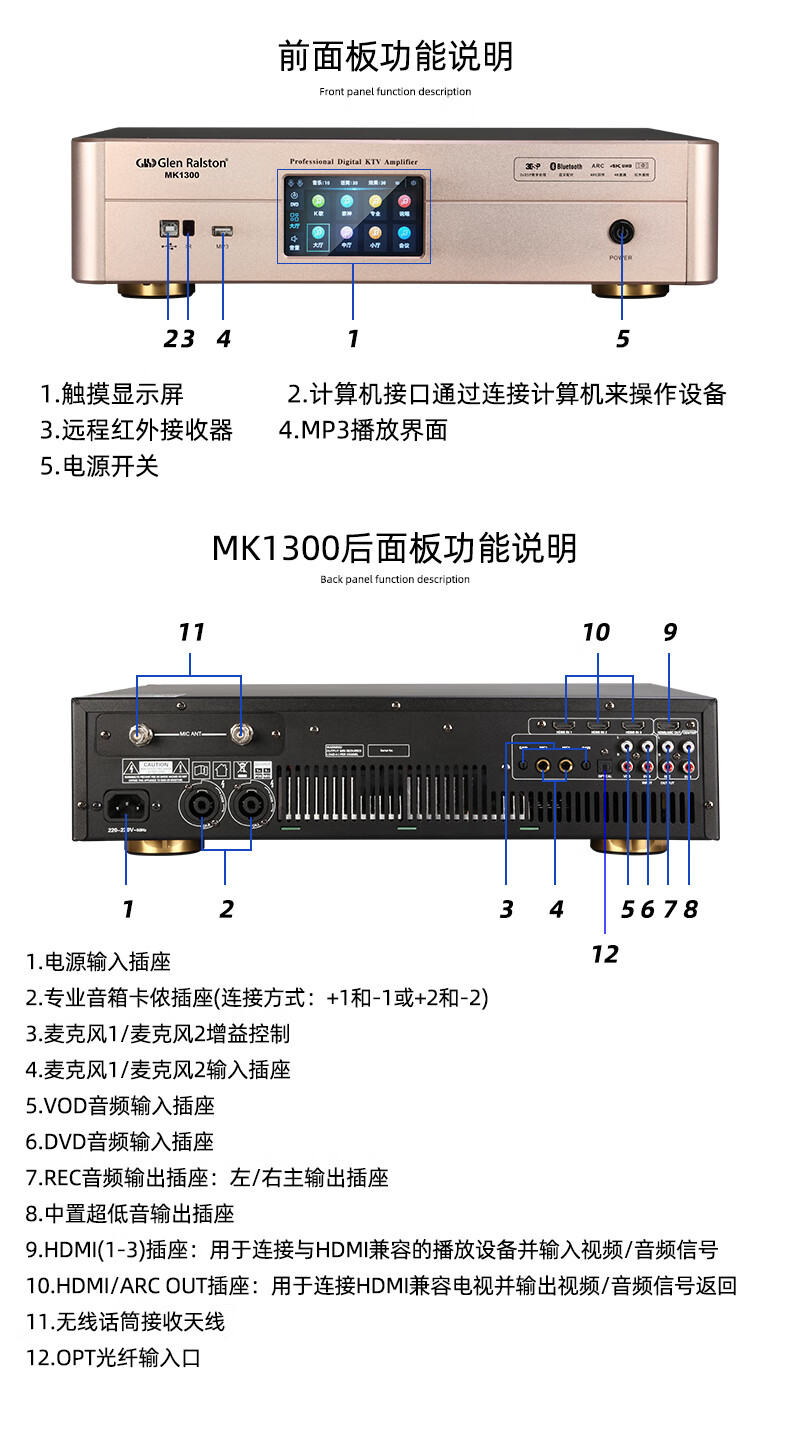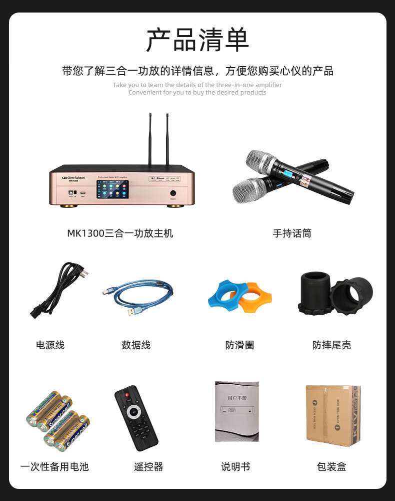 Glen Ralston ktv power amplifier pre-effector with wireless microphone and Bluetooth three-in-one home theater speaker set MK1500 (600W*2) three-in-one power amplifier