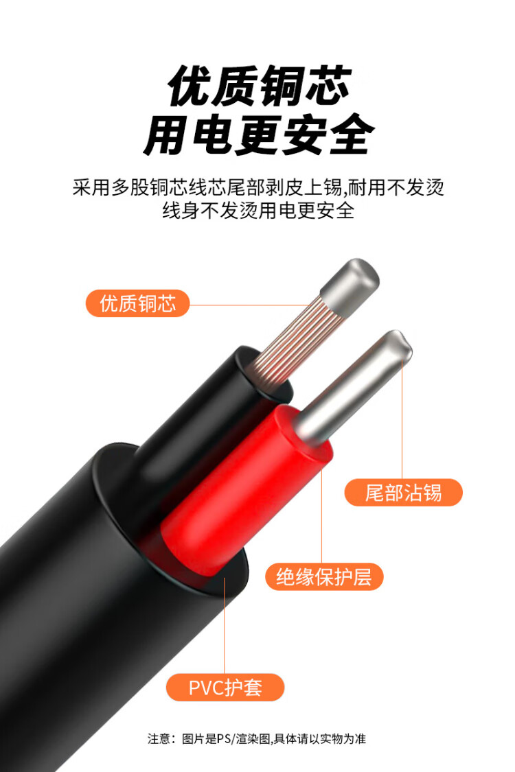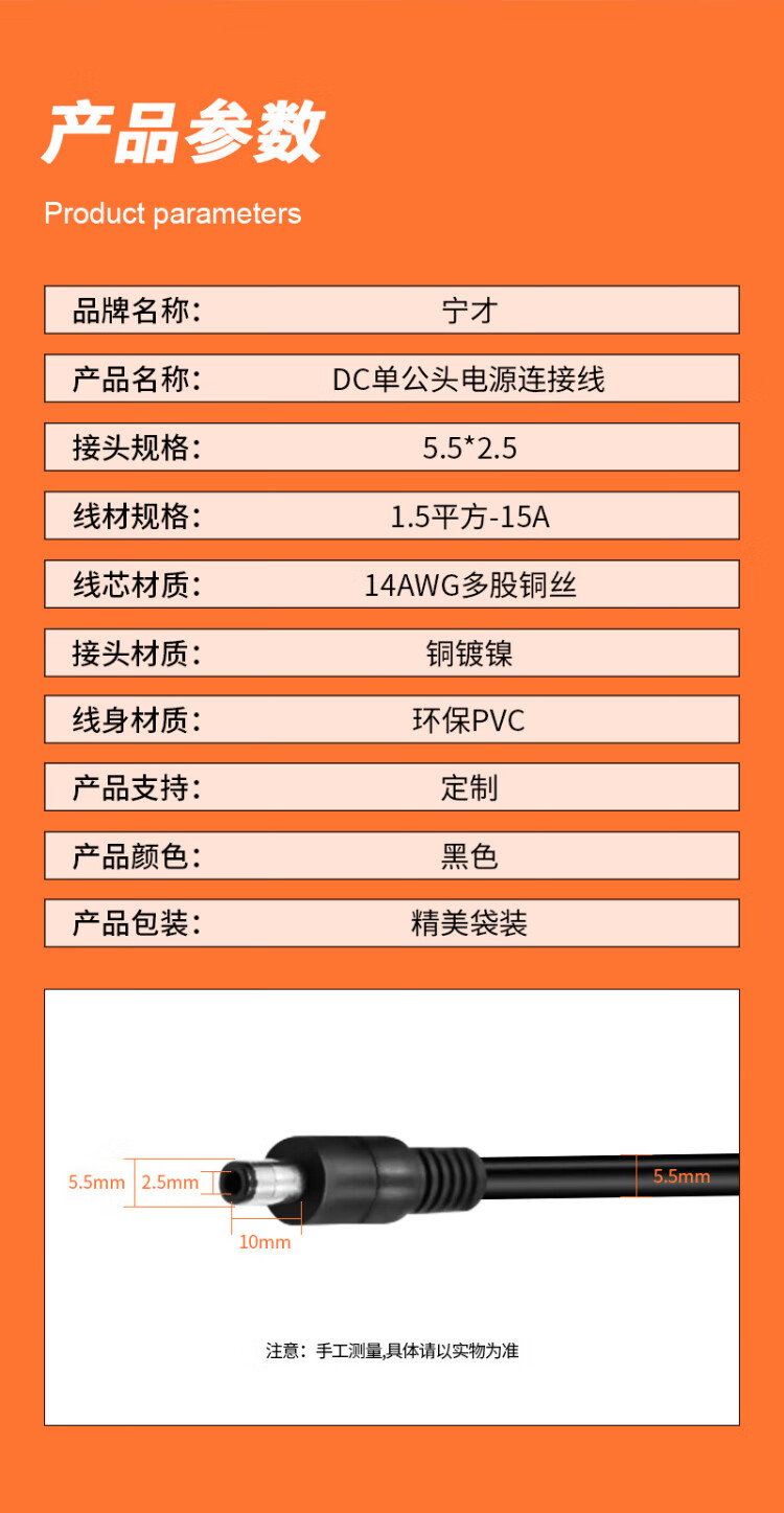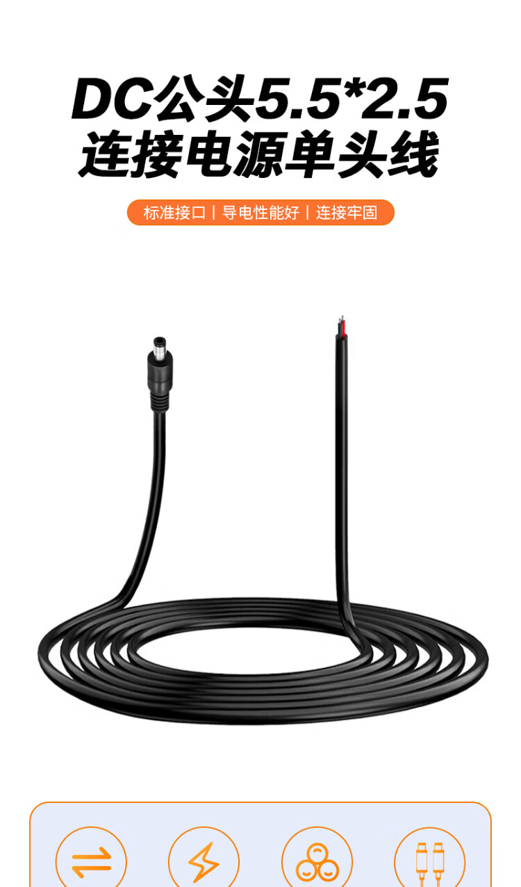 Ningcai (NINGCAI) DC power cord 1.5 square 5/9/12V DC single-head connector line NC-5525M140050 maximum 15A current dc5.5*2.5 male 0.5m