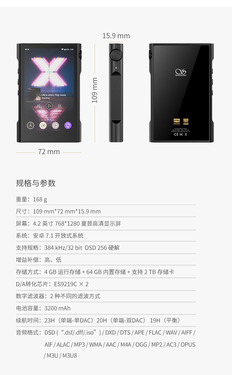 SHANLING Shanling M3X music player advanced version lossless music Android player mp3 Bluetooth hifi portable DAC hard solution M3X advanced version 4GB+64GB
