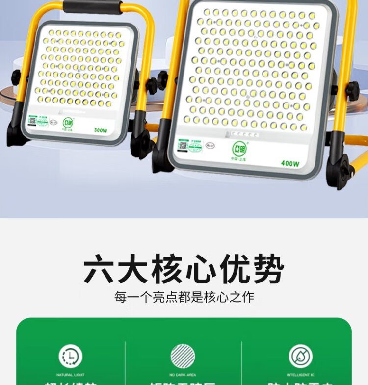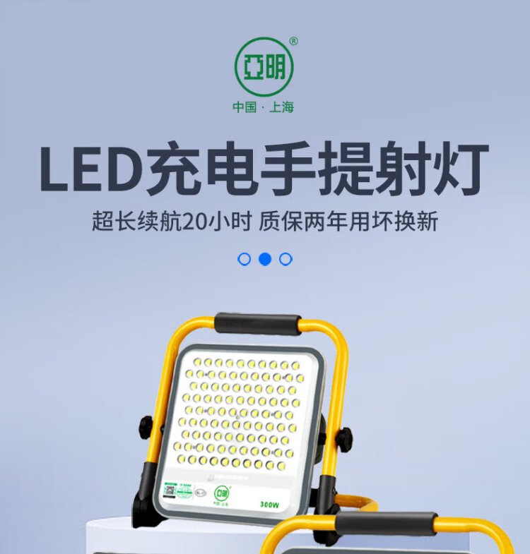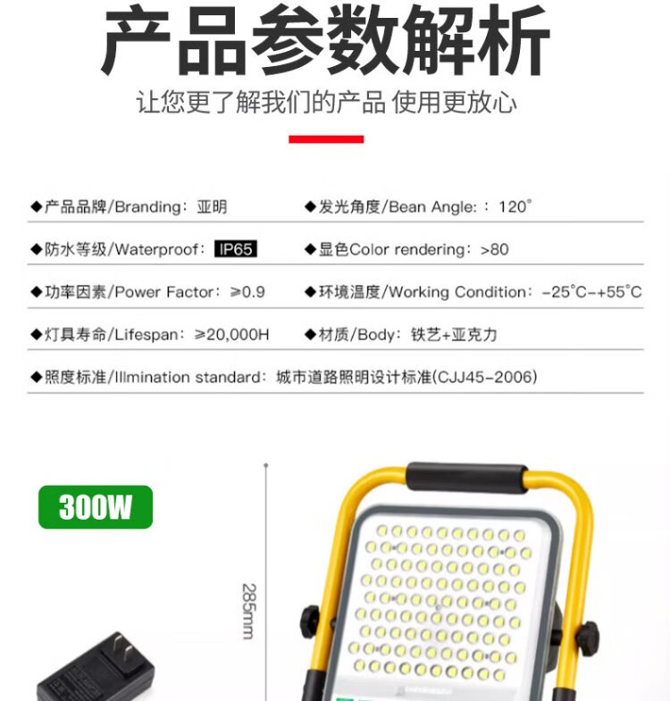 Yaming LED rechargeable floodlight super bright waterproof construction site emergency mobile portable field camping night market outdoor lighting 300W