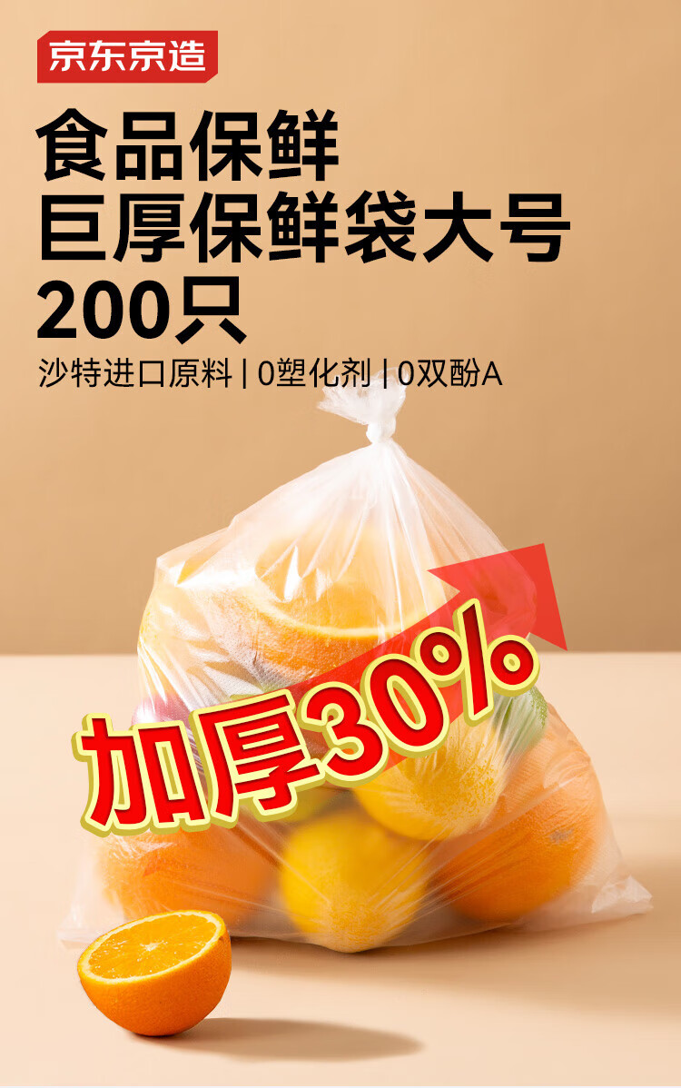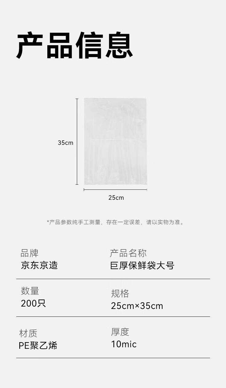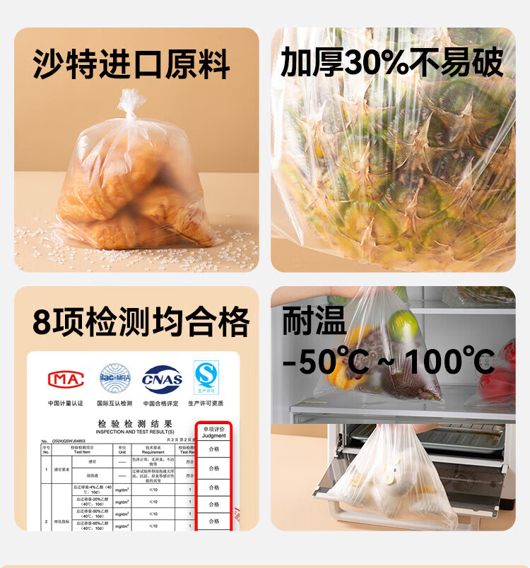 Made in Tokyo, fresh-keeping bags, food-grade thick large flat plastic bags 25*35cm, 200 pieces