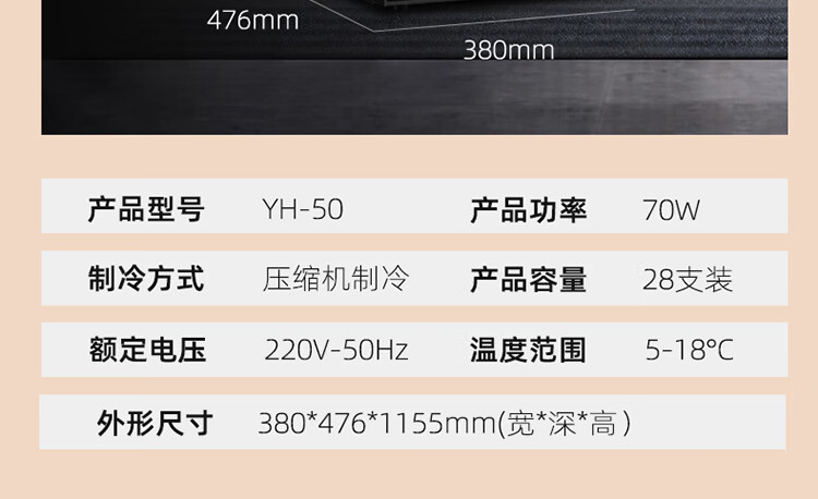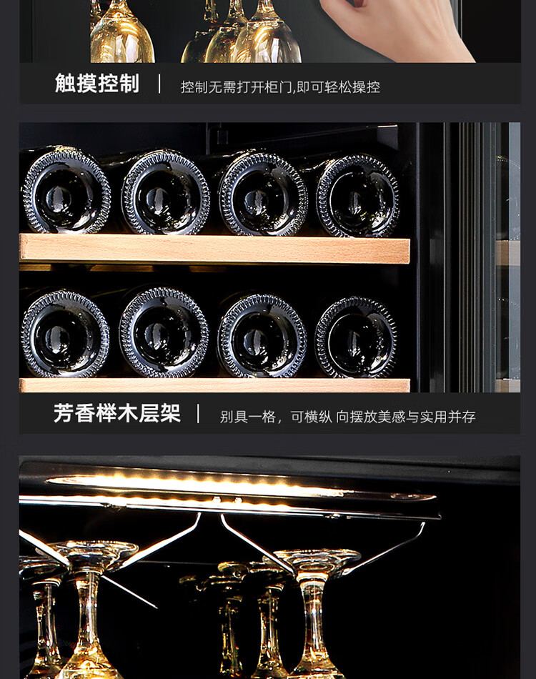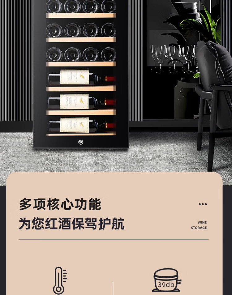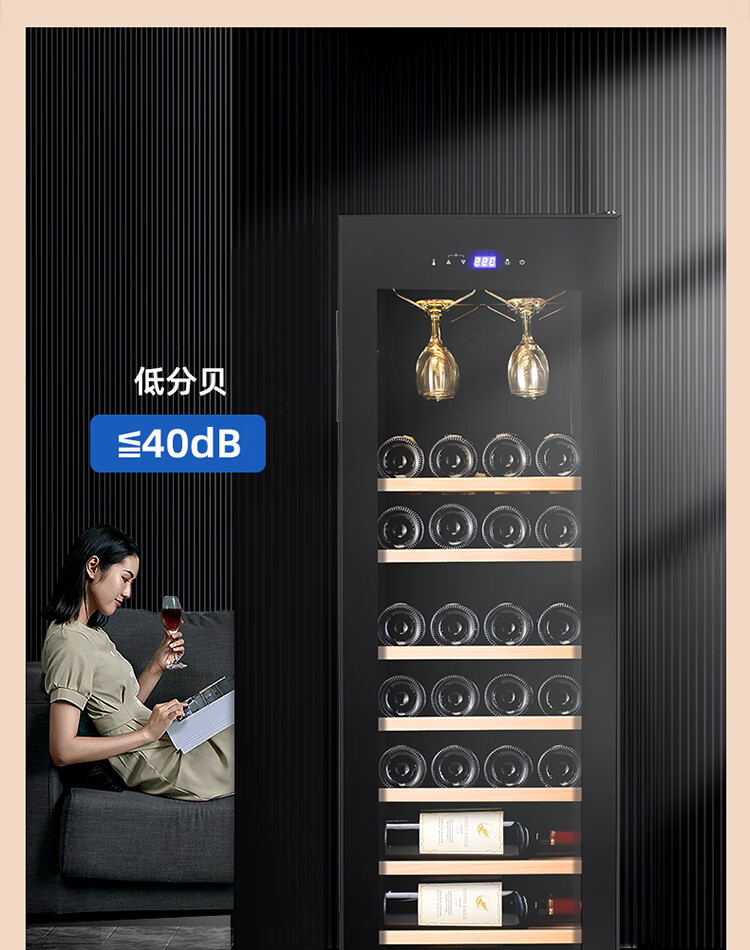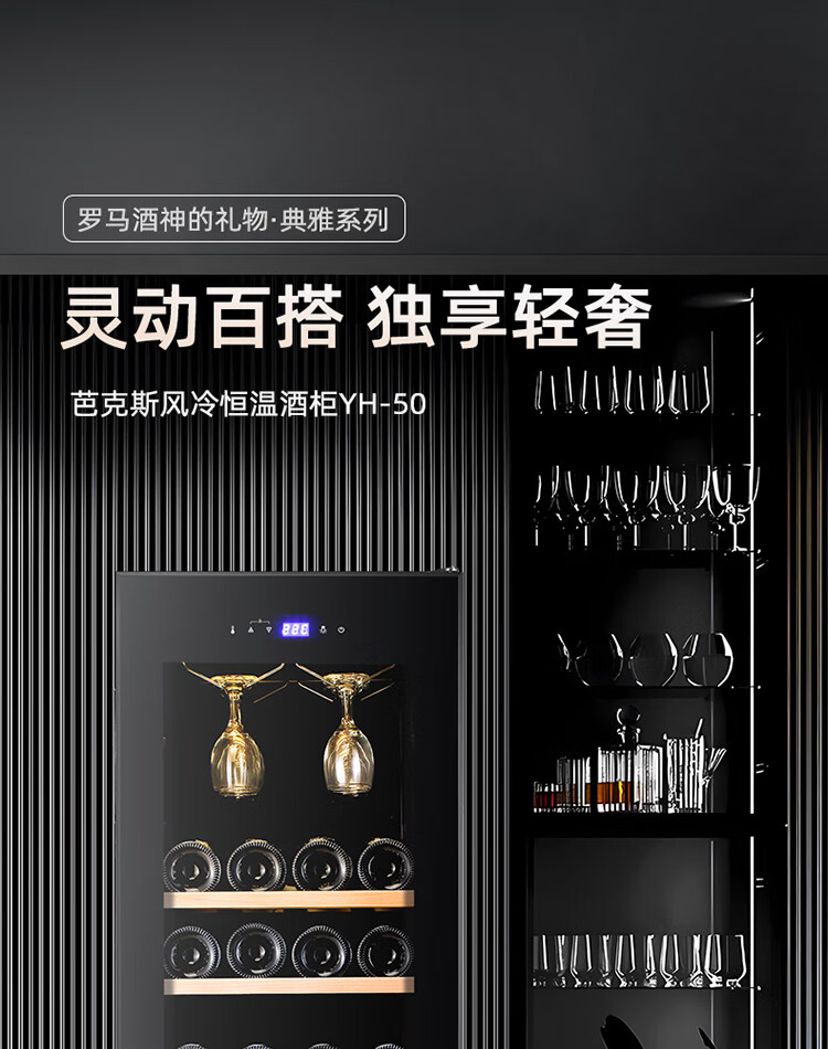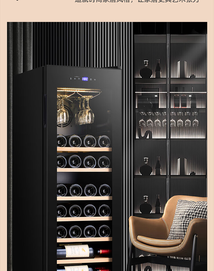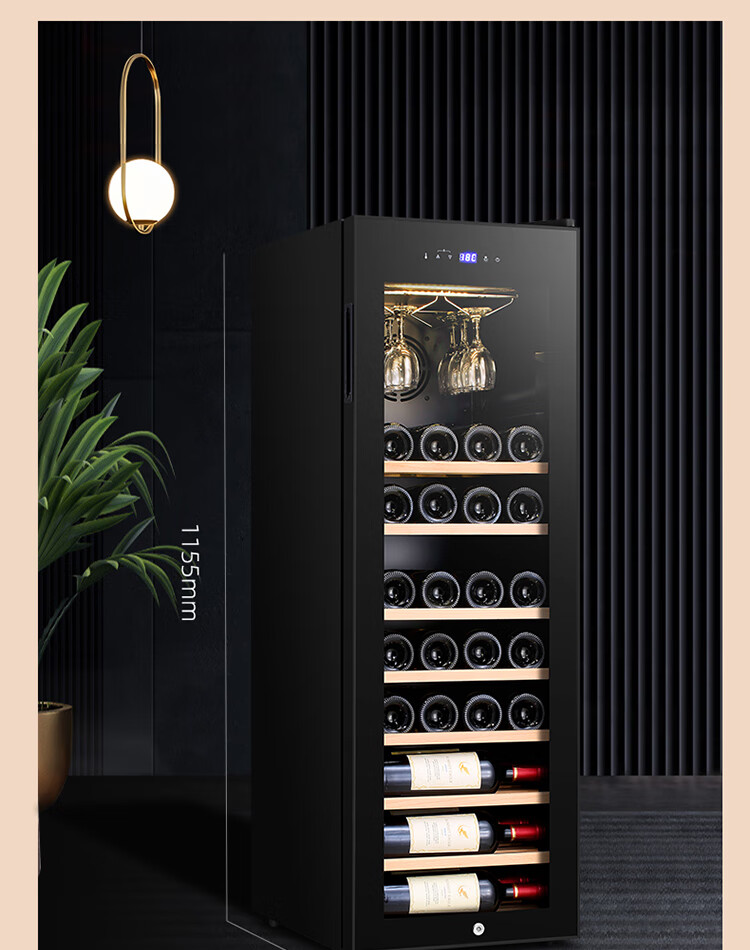 Bacchus wine cabinet with hanging cups, 38 bottles, thermostatic cabinet, household wine cabinet, multi-functional office refrigerated wine tea cabinet, air-cooled frost-free single-door vertical display cabinet YH-50