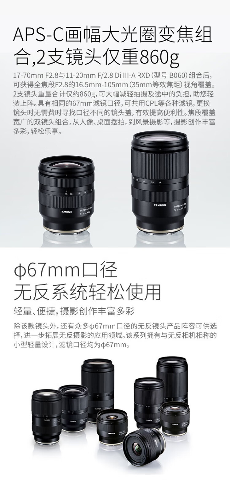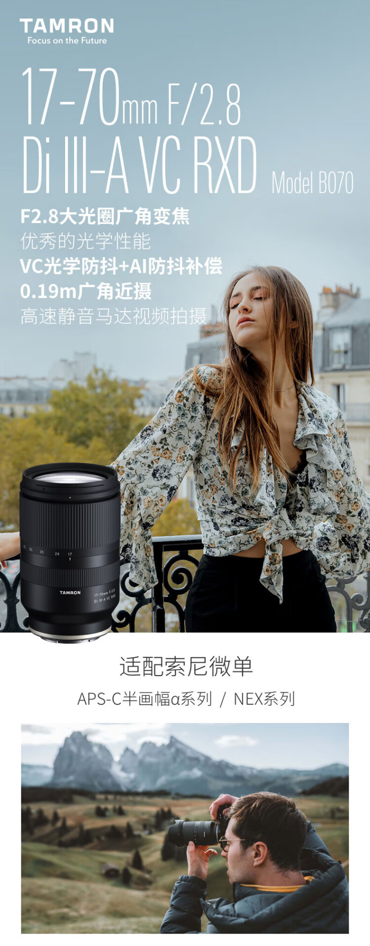 Tamron B070 17-70mm F/2.8 VC anti-shake large aperture mirrorless lens 17-70 landscape portrait travel half-frame 1770 Sony E-mount official standard comes with Tamron UV lens + Tamron CPL polarization + cleaning set