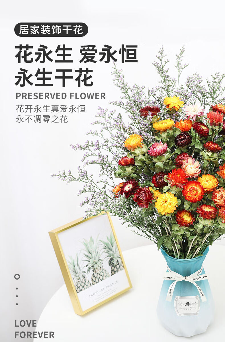 AIMAN natural chrysanthemum dried flowers real flowers air-dried ins Internet celebrity flower decoration ornaments literary flower arrangement Nordic decoration violet light blue 10 pieces
