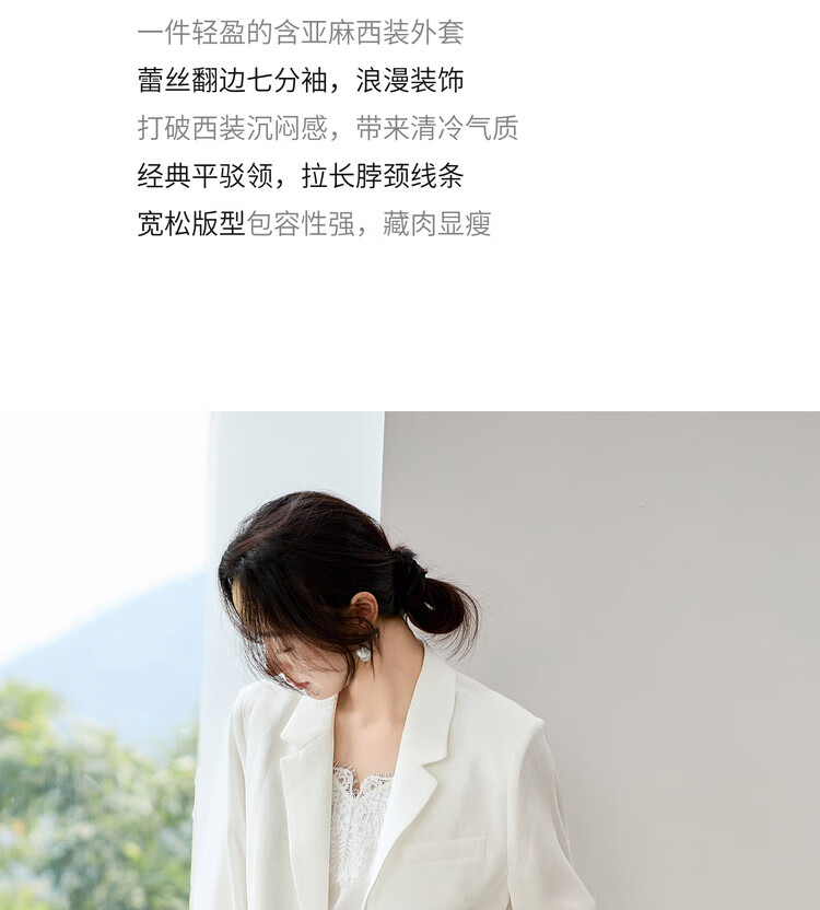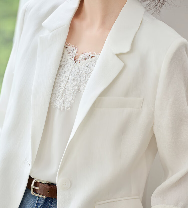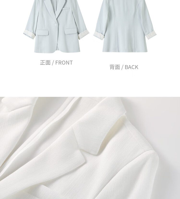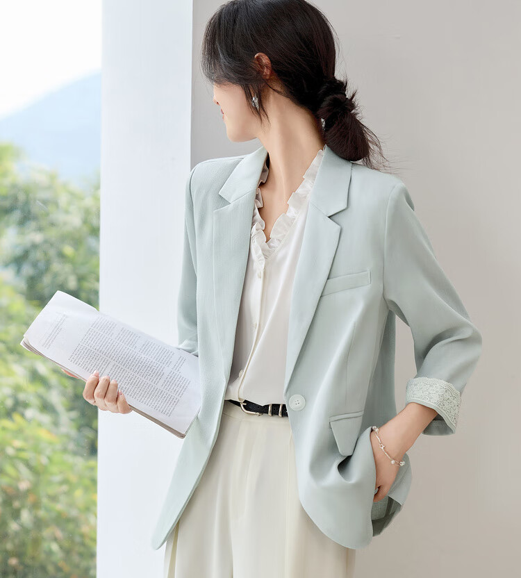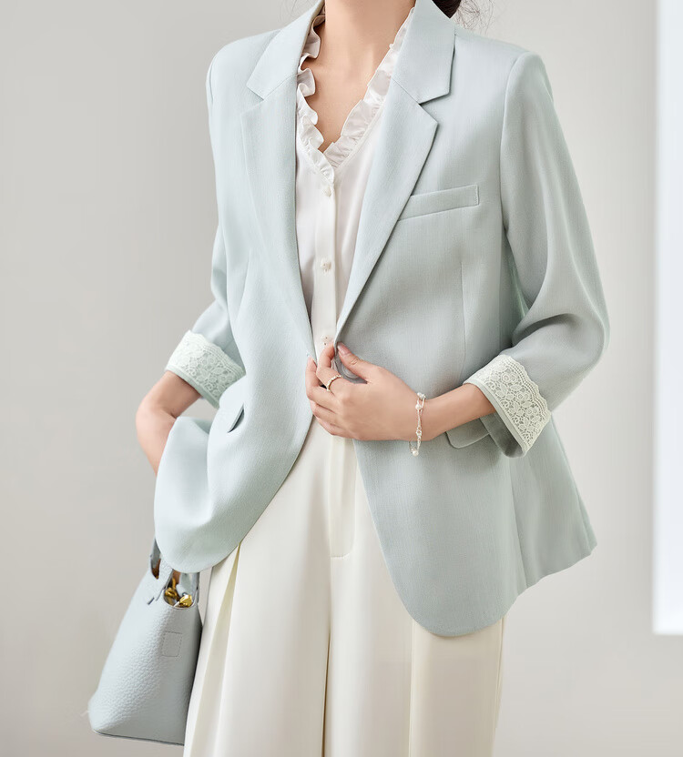 Chandubila Contains Linen 2025 Autumn One-button Shoulder Pad Lace Cuffs Notched Lapel Three-quarter Sleeve Blazer