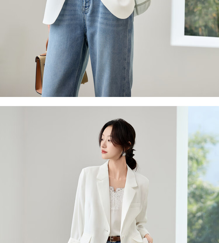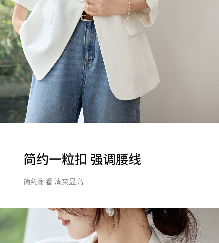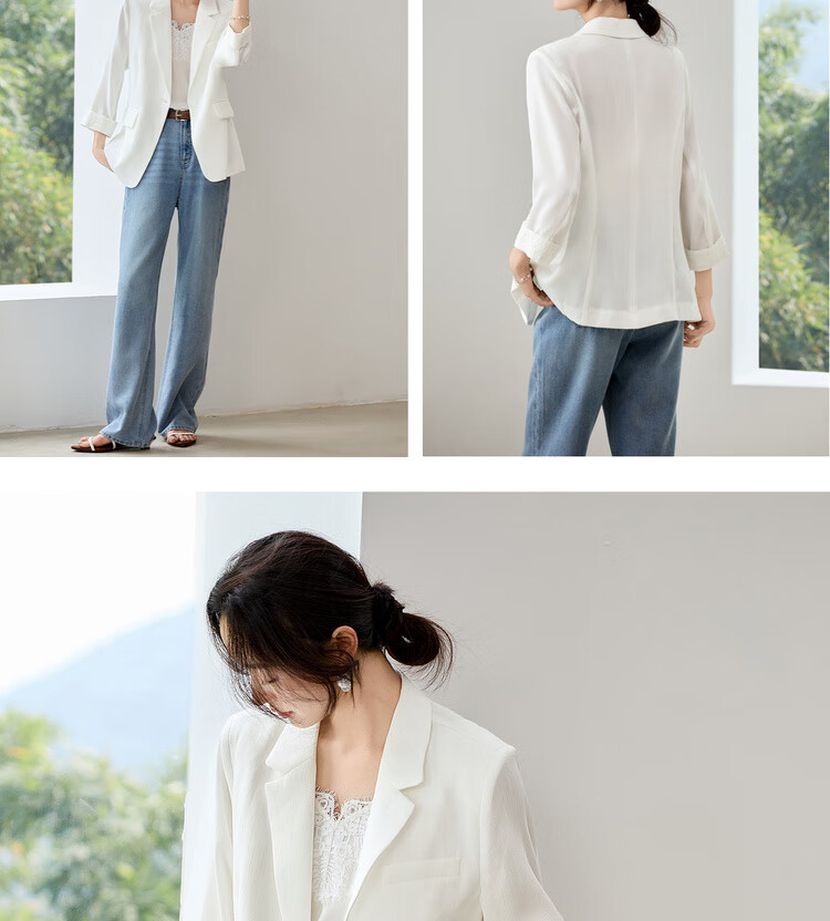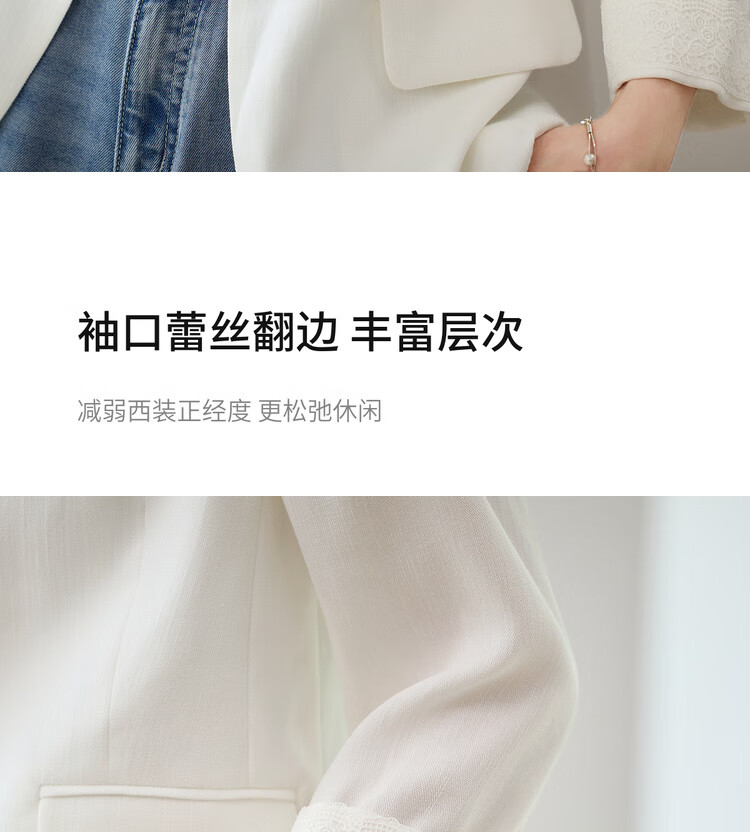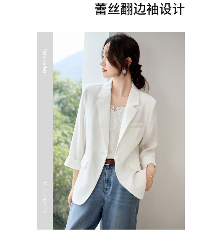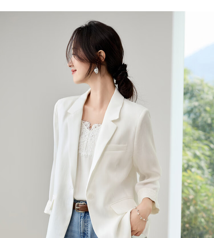 Chandubila Contains Linen 2025 Autumn One-button Shoulder Pad Lace Cuffs Notched Lapel Three-quarter Sleeve Blazer