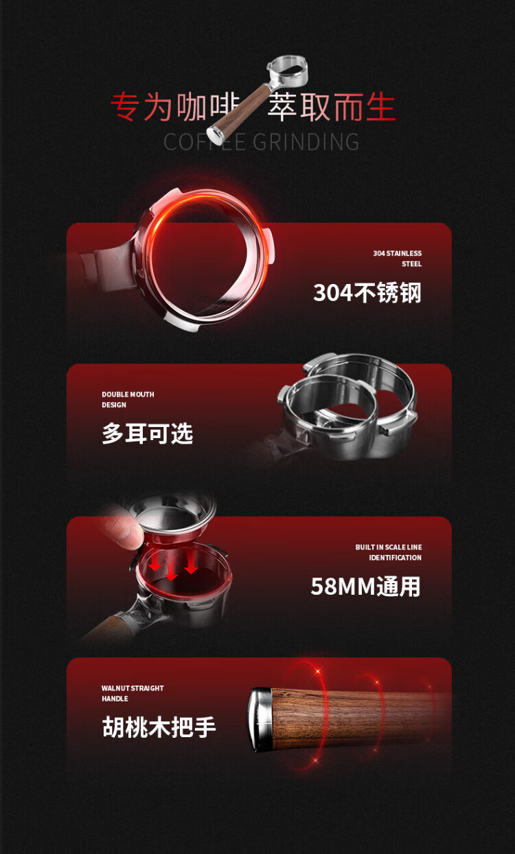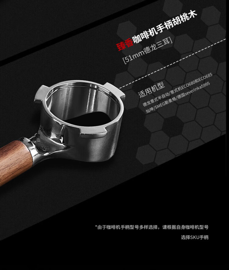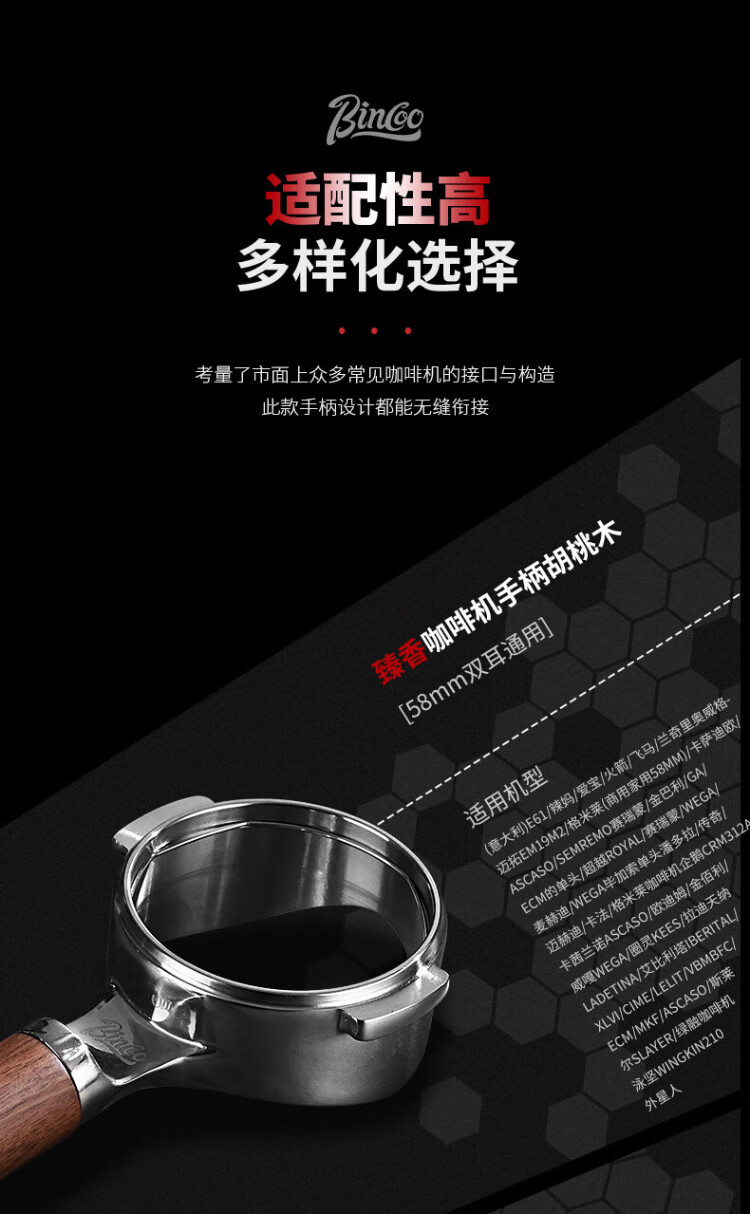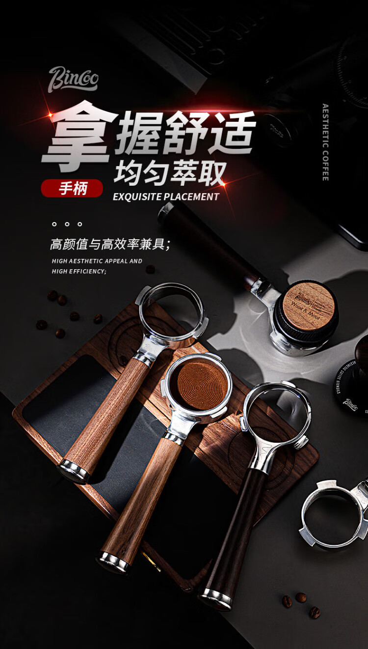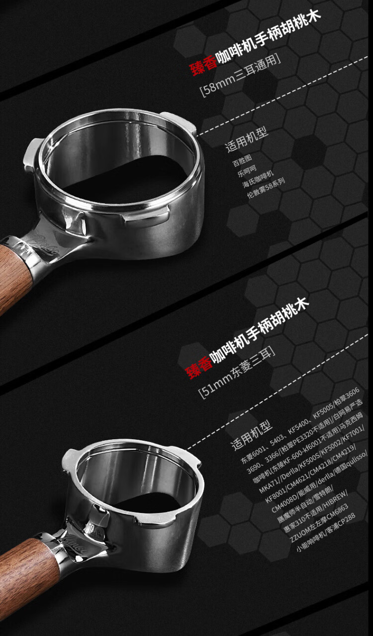 Bincoo Zhenxiang coffee machine bottomless handle 51/58mm espresso machine modified bottomless walnut handle