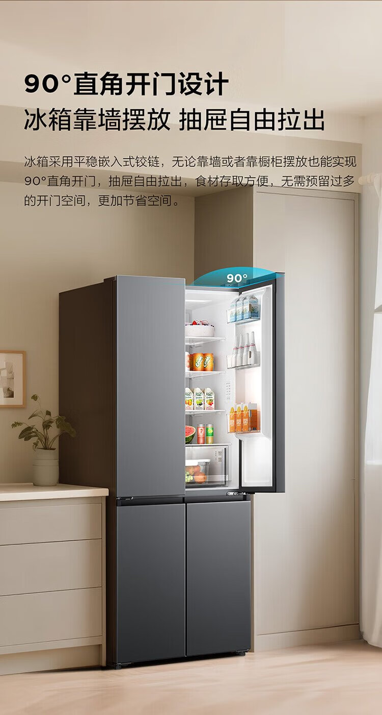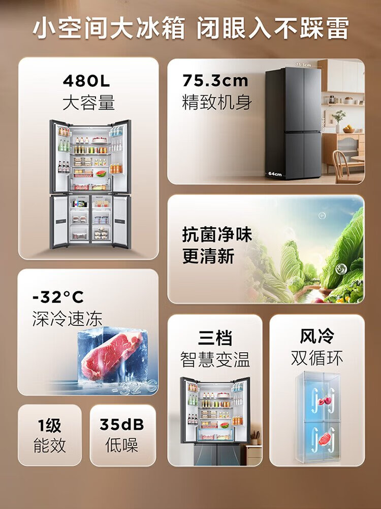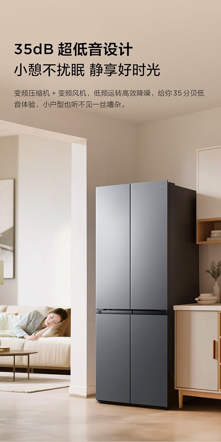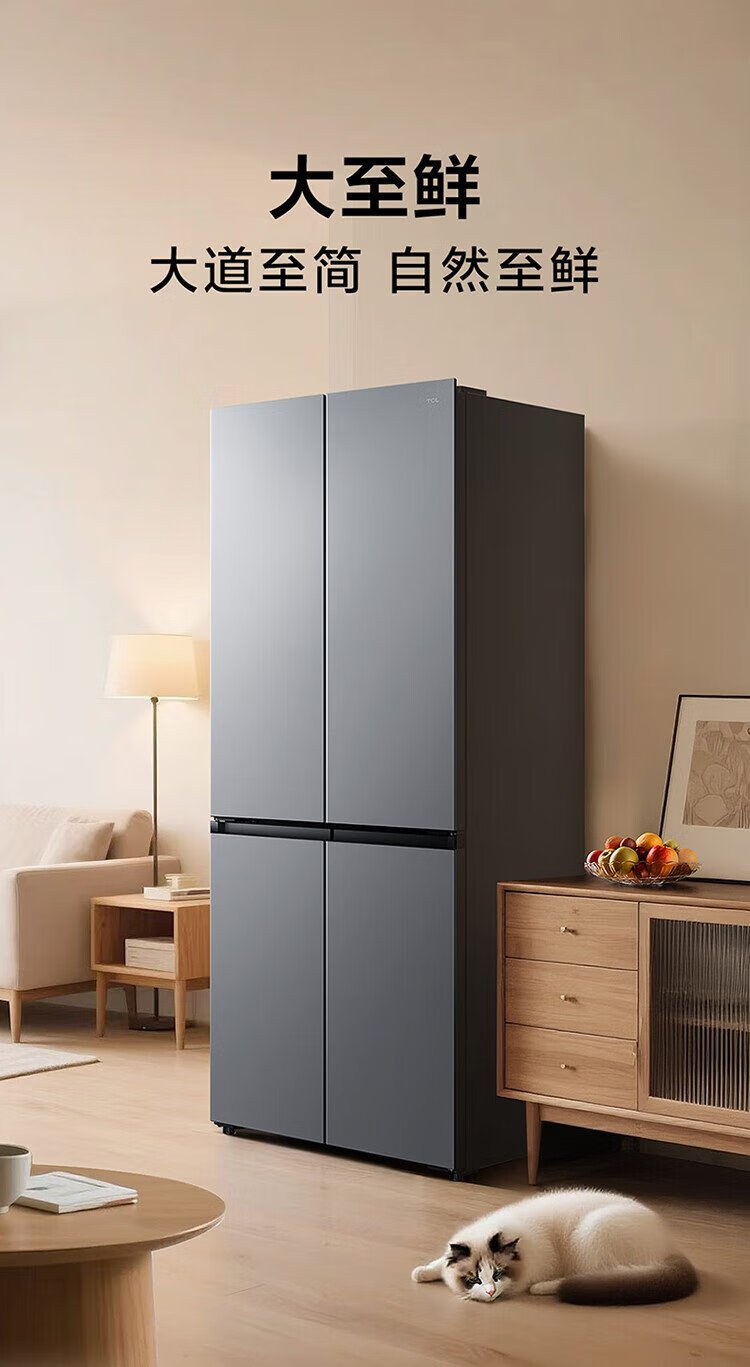TCL 480-liter cross-fold four-door ultra-narrow small apartment large capacity net odor antibacterial deep-freezing quick-frozen household refrigerator first-class energy efficiency air-cooled national subsidy R480V7-U