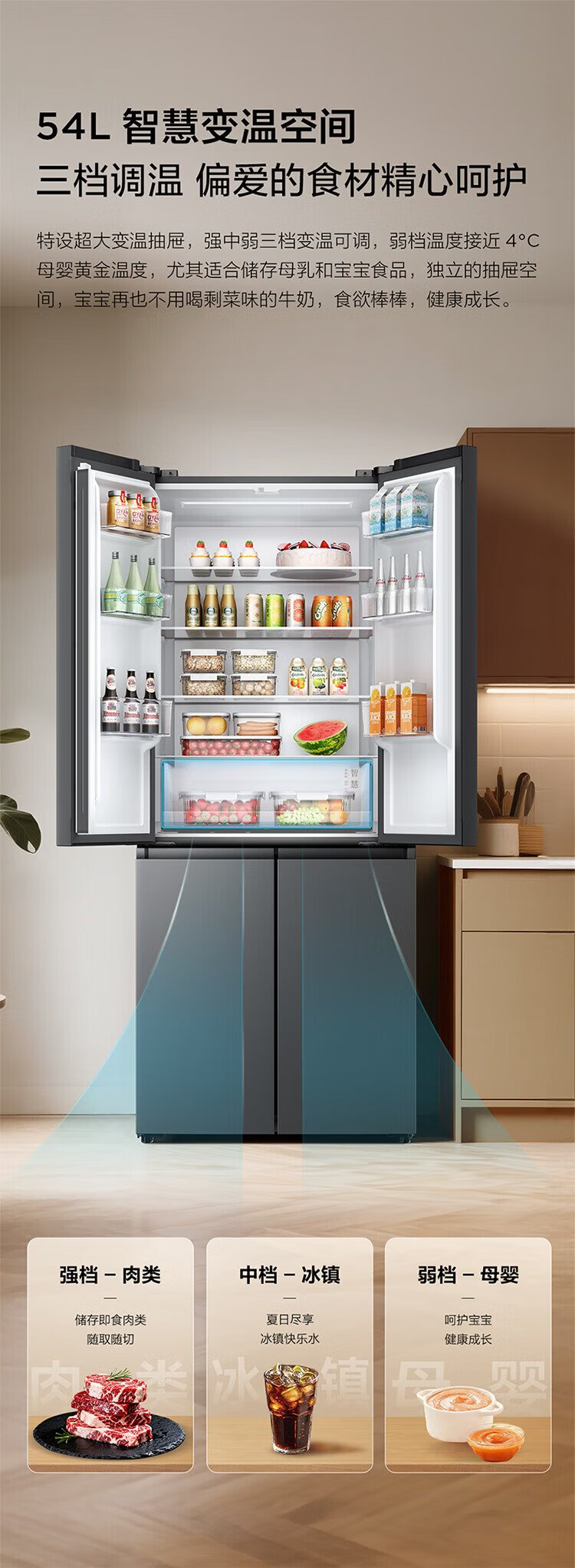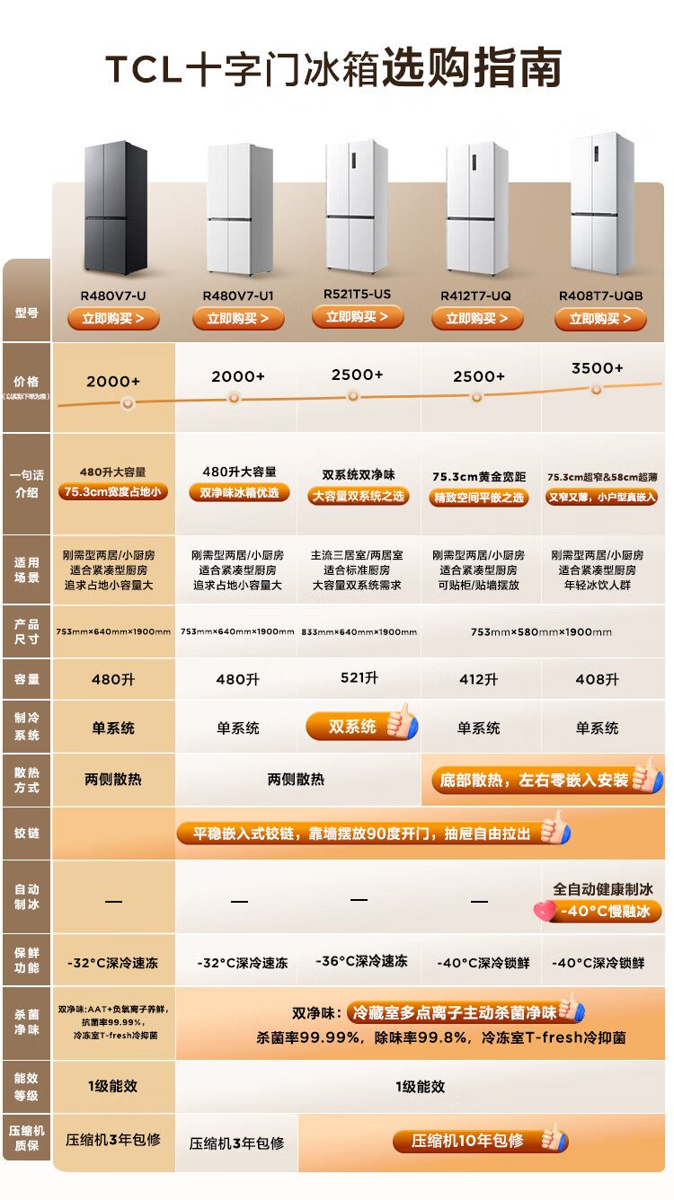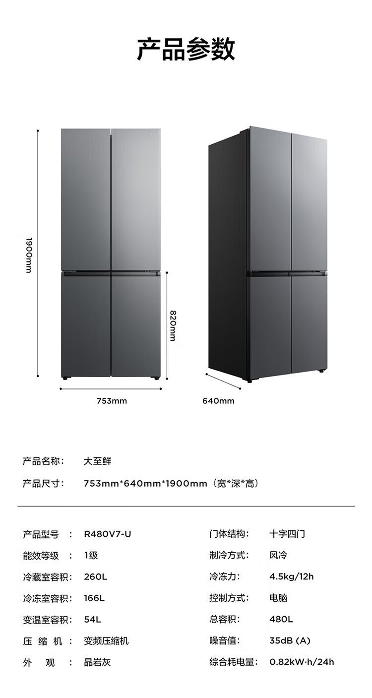 TCL 480-liter cross-fold four-door ultra-narrow small apartment large capacity net odor antibacterial deep-freezing quick-frozen household refrigerator first-class energy efficiency air-cooled national subsidy R480V7-U