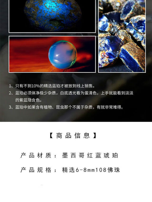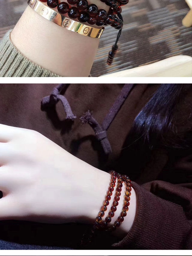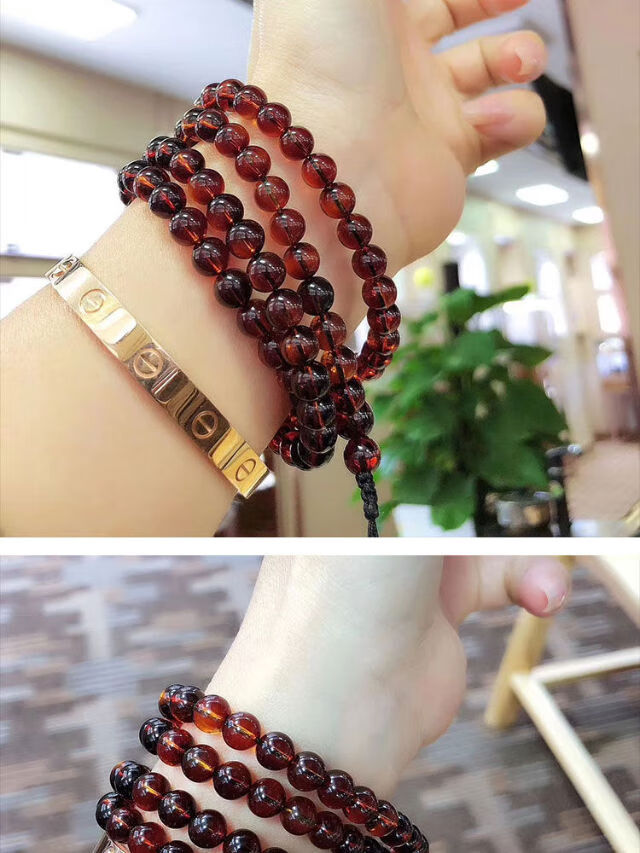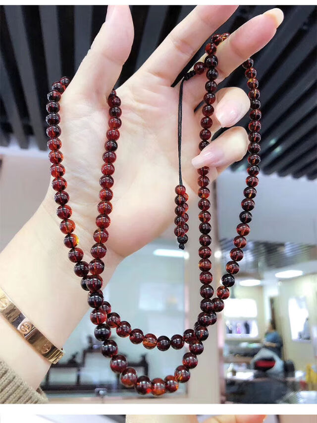 Moshe Dominican red and blue amber bracelet, blood amber 3A water purification beads, sweater chain, Mexican amber, beeswax necklace (6mm) red and blue amber 108 beads