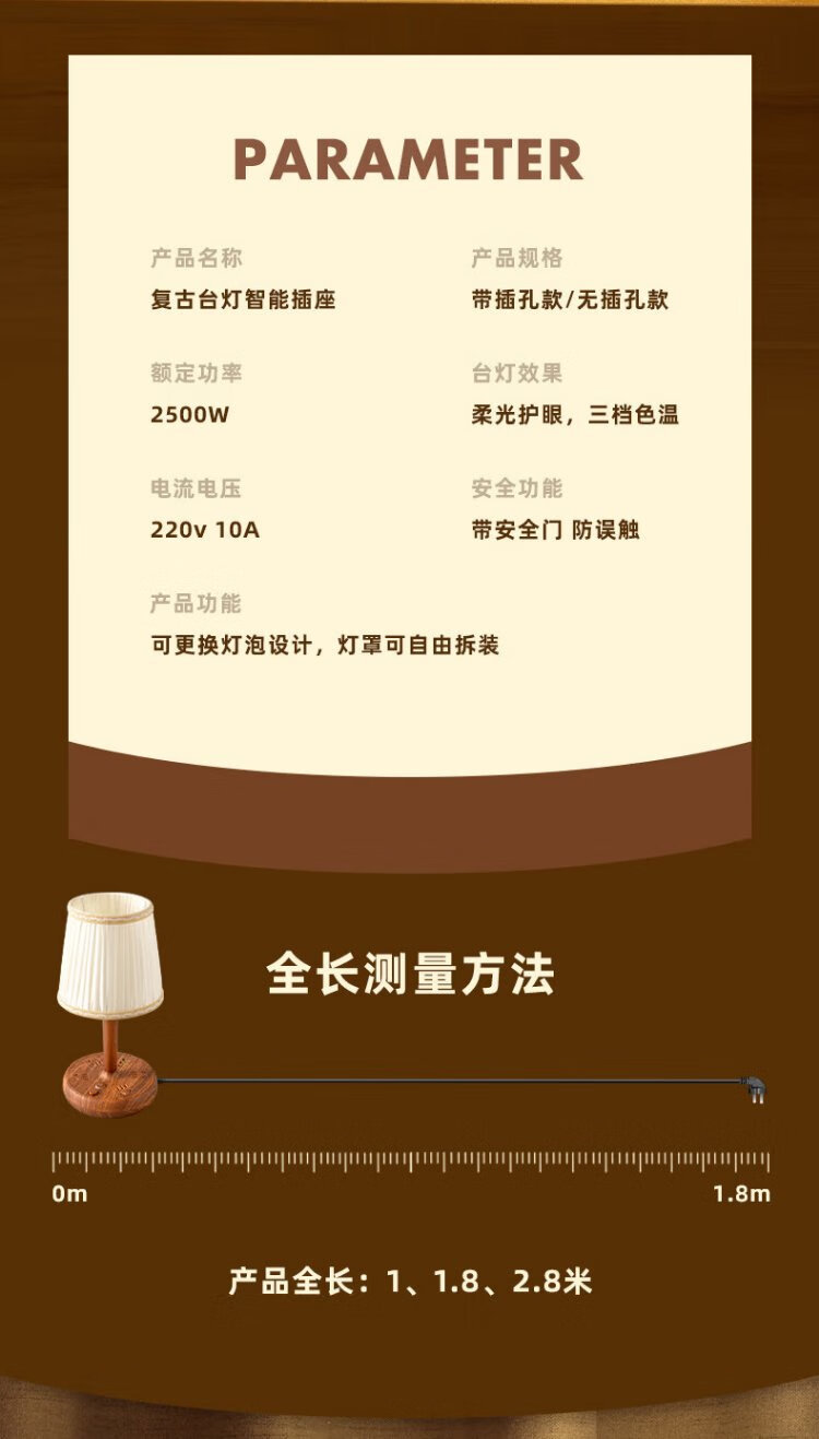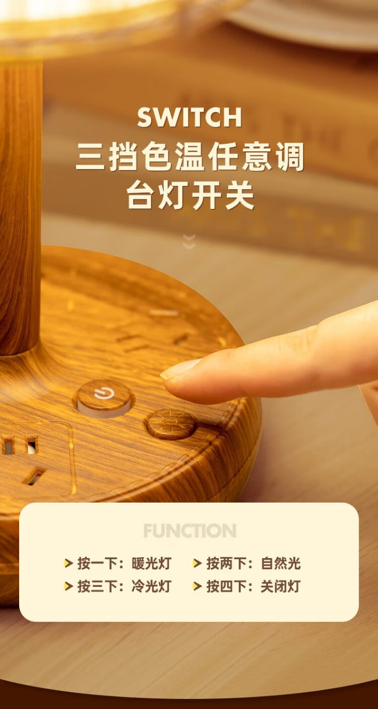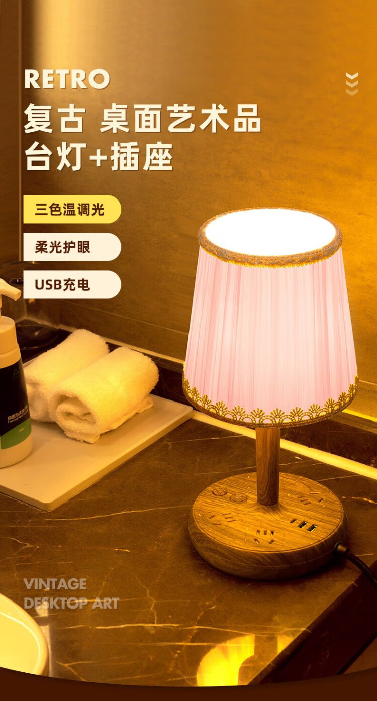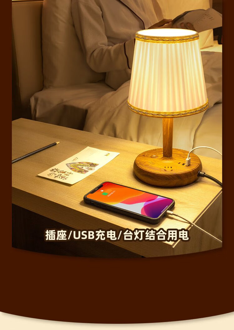 Susshhelmo Патрон для настольной лампы в скандинавском стиле | Дзен-ночник в древнем стиле, прикроватная лампа для спальни, кабинета, сменная лампочка, 3 уровня яркости, 4 положения, 2U1C, 1,8 метра