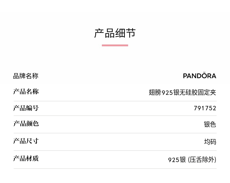 PANDORA Wing Clip 925 Silver Personalized Fashion Jewelry Accessories DIY Beaded Birthday Gift for Girlfriend Simple Charm One Size