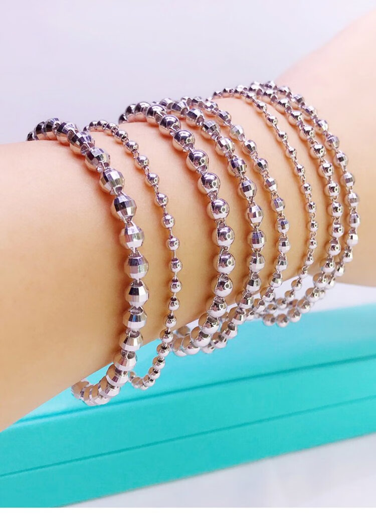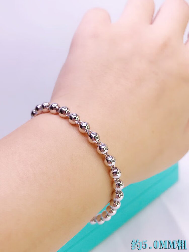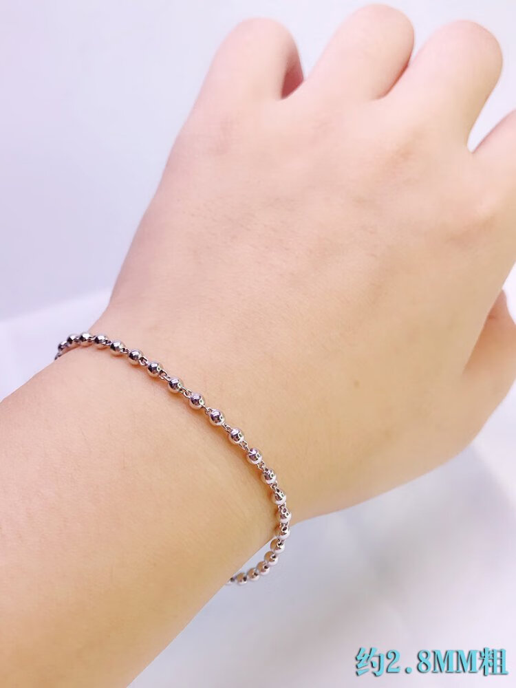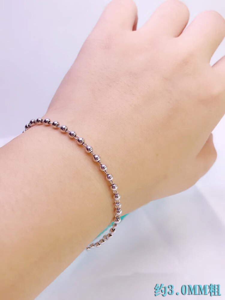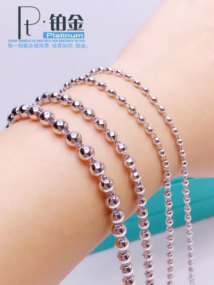 Heye Jewelry Platinum Bracelet Women's pt950 Round Pearl Beads Women's Platinum Bracelet Platinum Hand Beads Bracelet 4.0mm thick 7.23g long 16cm with adjustment