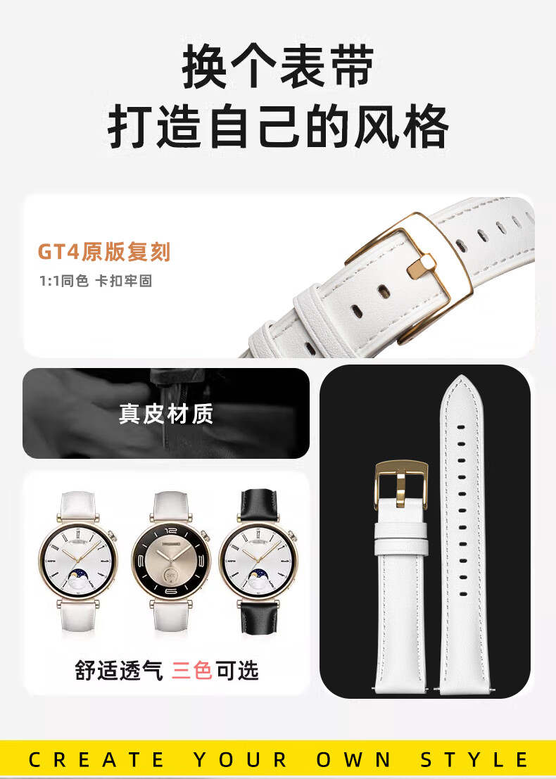 Hong Kong Jazz suitable for Huawei watch gt6pro leather strap gt4/gt5 quick release strap women's calfskin 42/41mm dial strap width 18mm black rose gold buckle