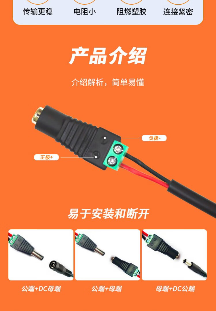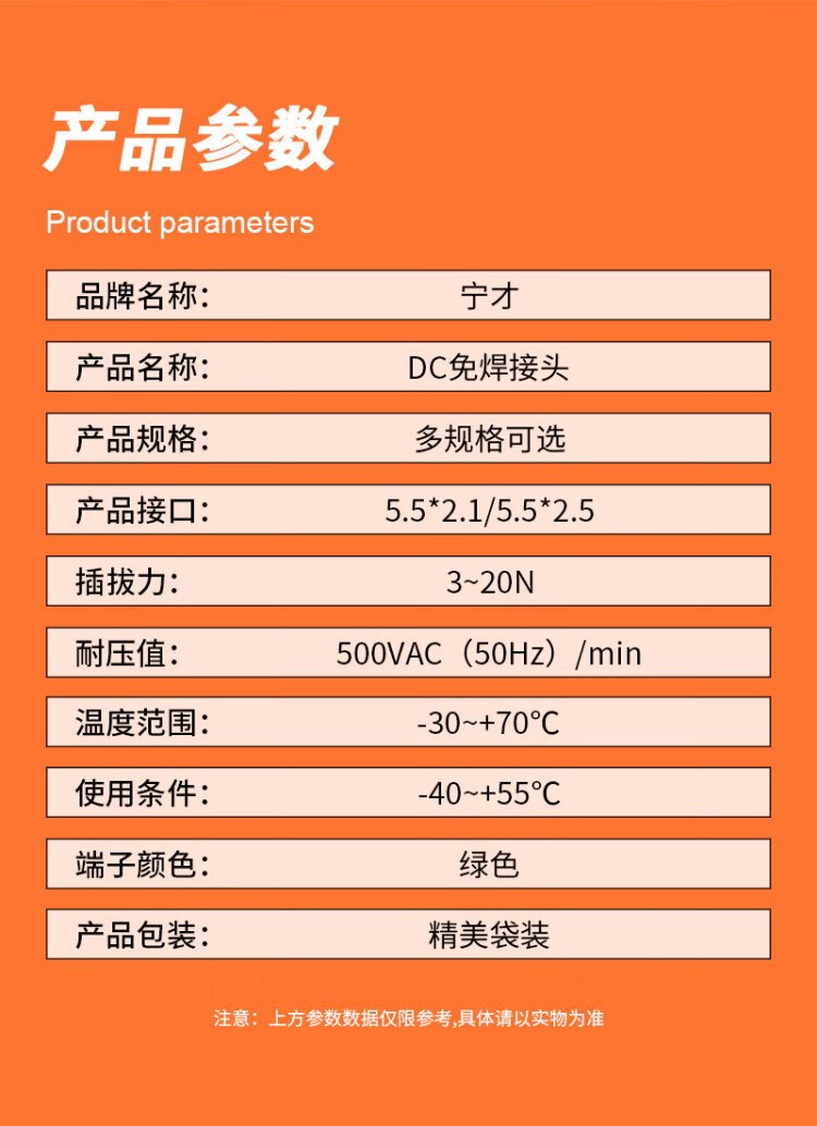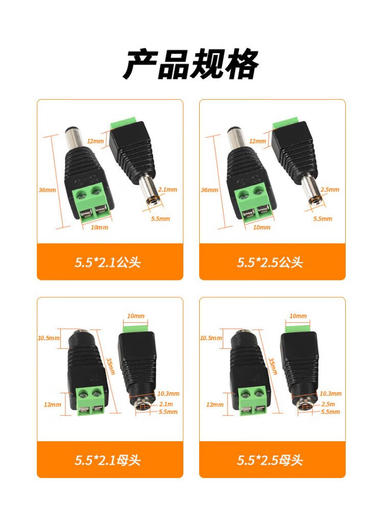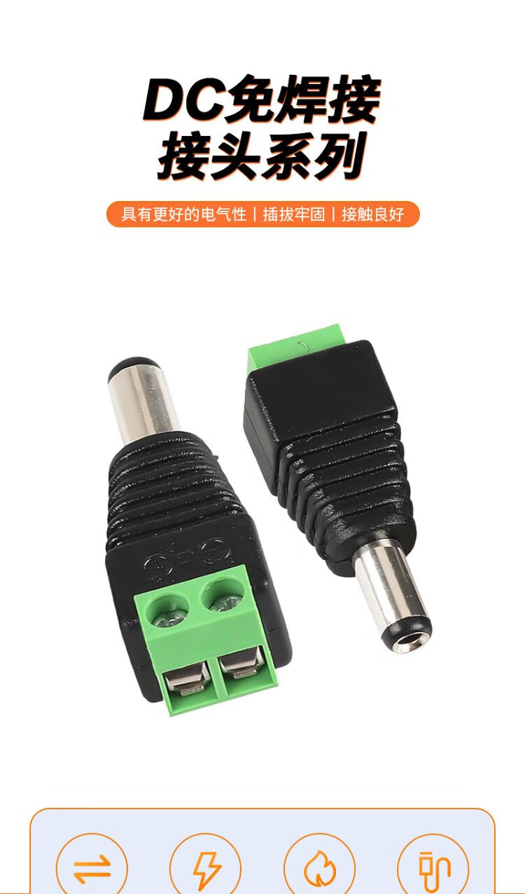 Ningcai (NINGCAI) DC power plug quick wiring monitoring connector NC-MHK5525-F green screw-free solderless 5.5*2.5 female connector 10 pieces