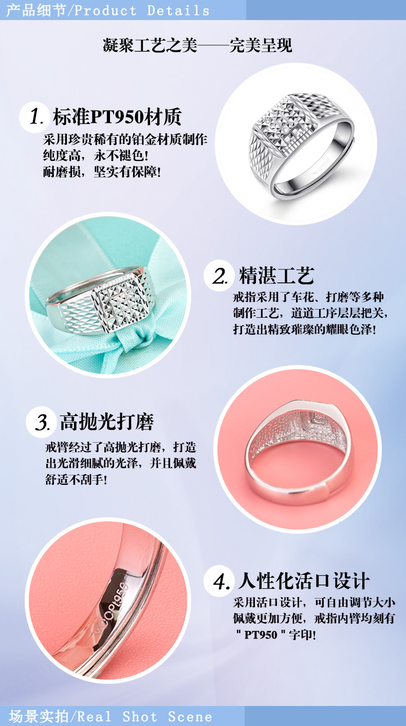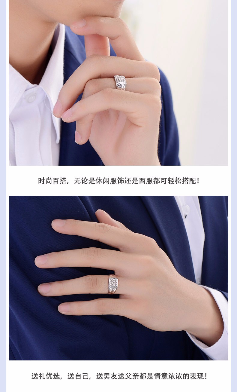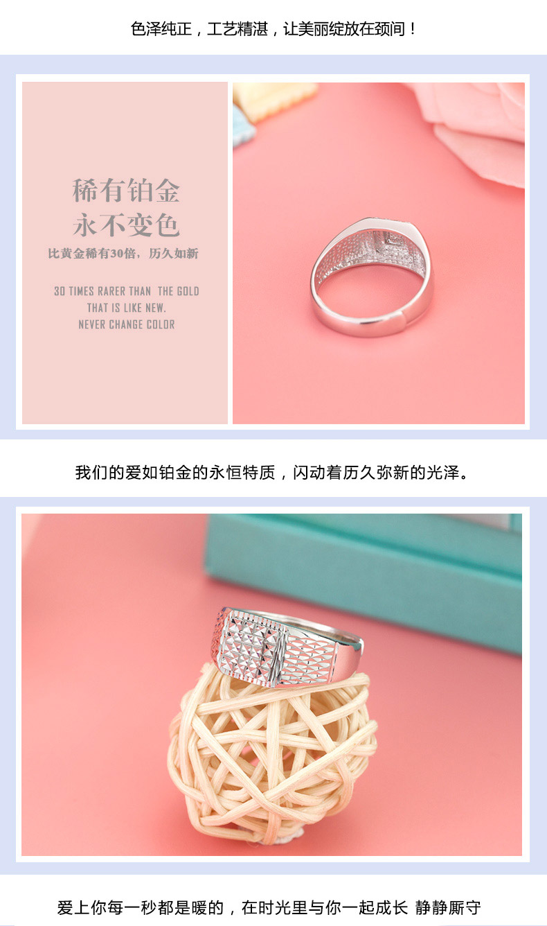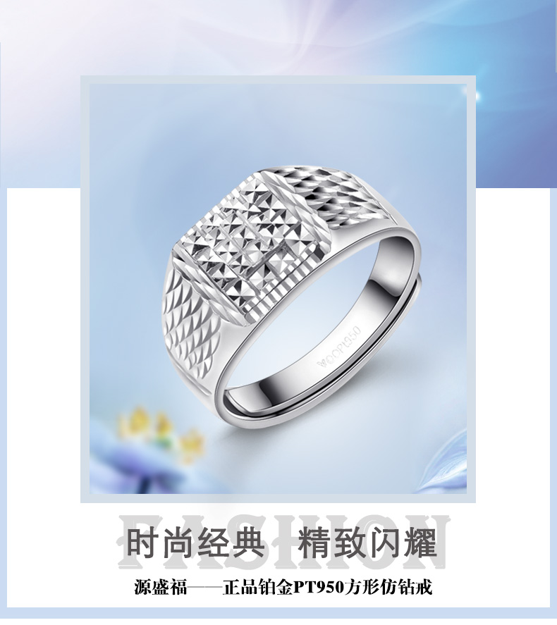 Yuan Shengfu's new PT950 square imitation diamond platinum ring, fashionable and elegant platinum ring for men and women, adjustable mouth, 7.71 grams