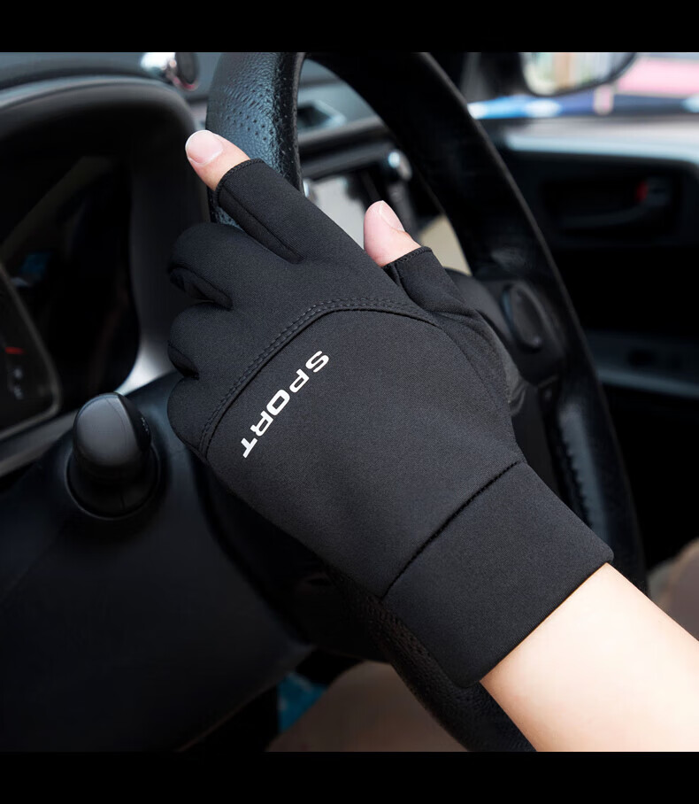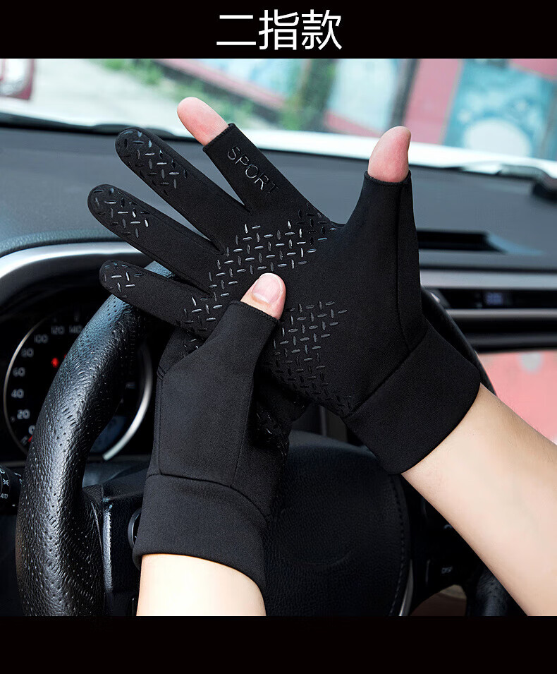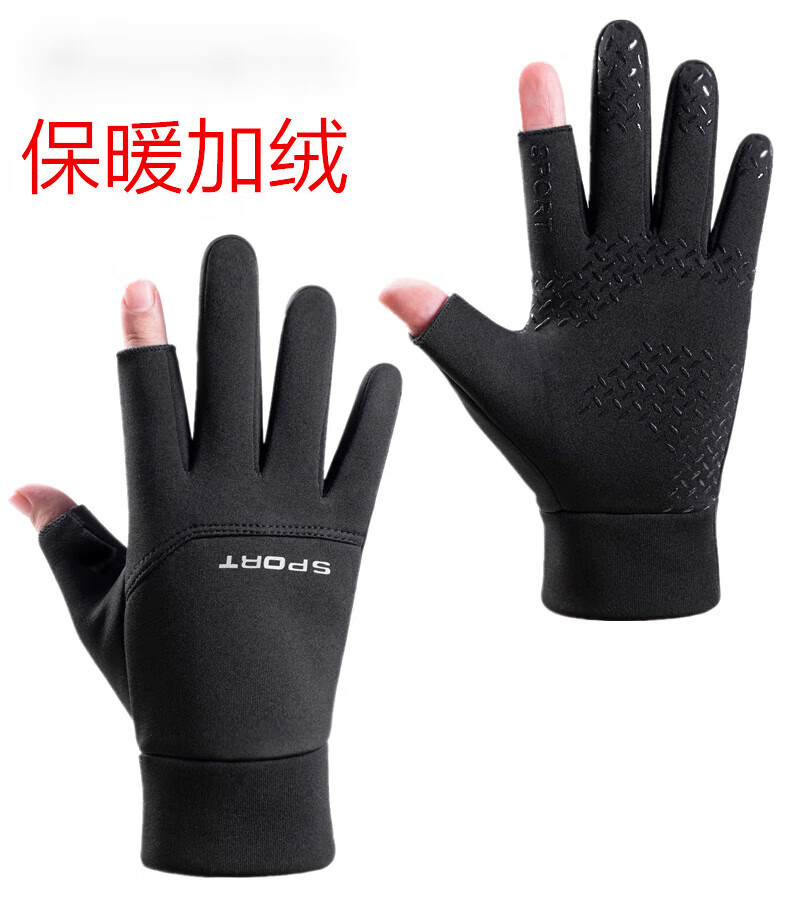 Feilanulun gloves men's winter warm anti-slip two-finger fishing gloves cycling takeaway rider driving gloves men's black two-finger one-size-fits-all