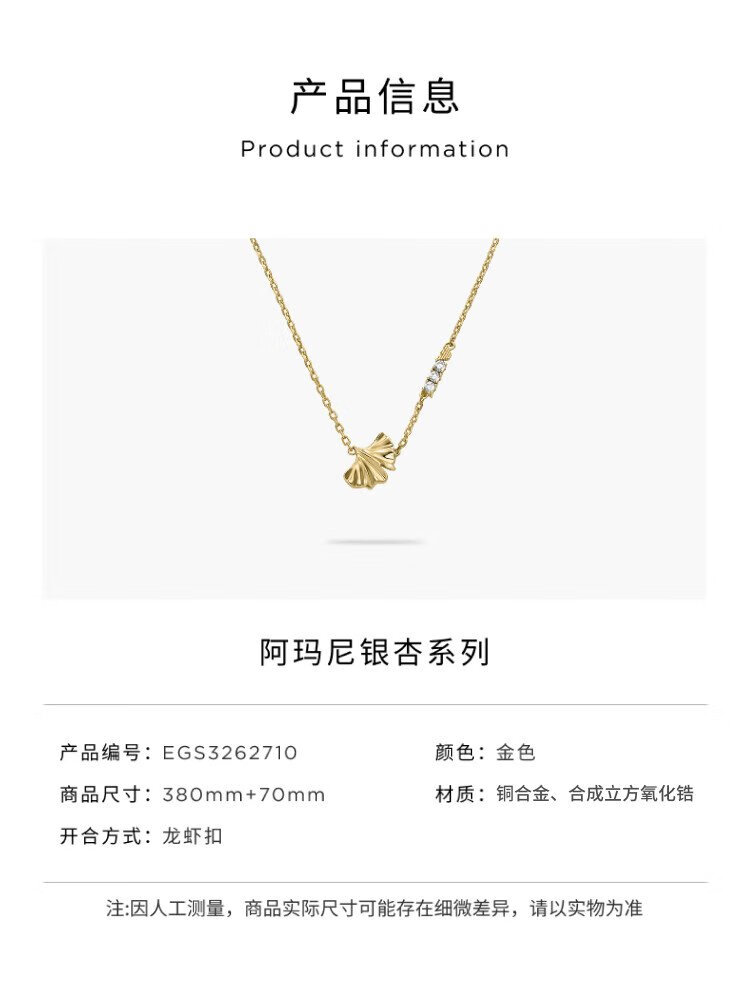 EMPORIO ARMANI Armani Women's Necklace White Deer Same Style Ginkgo Necklace Women's 2025 New Birthday Gift for Girlfriend