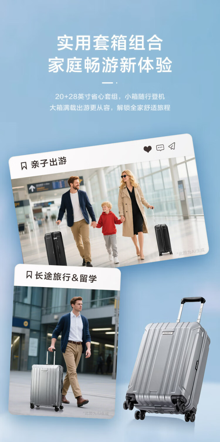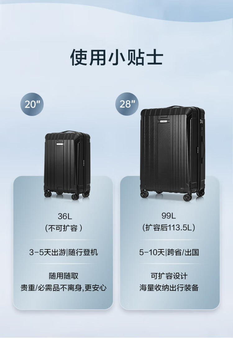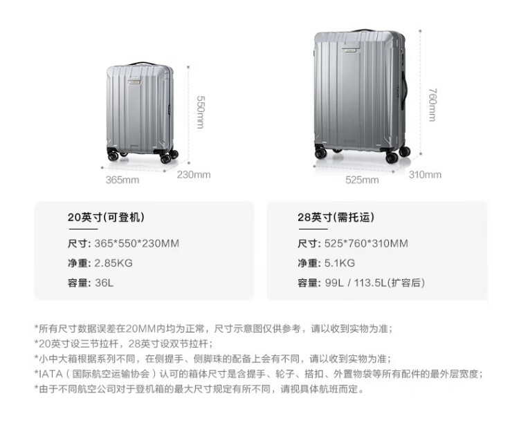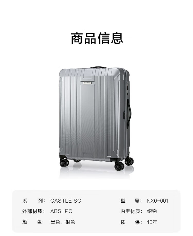 Samsonite suitcase 20 inches + 28 inches trolley box mother suitcase travel lock box NX0 silver