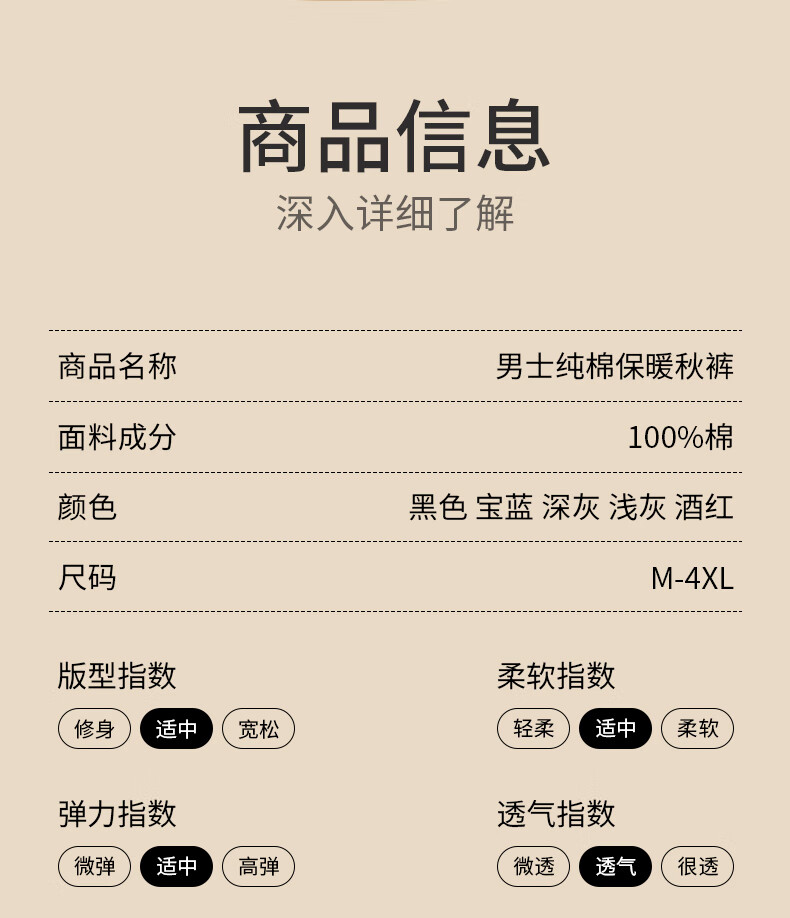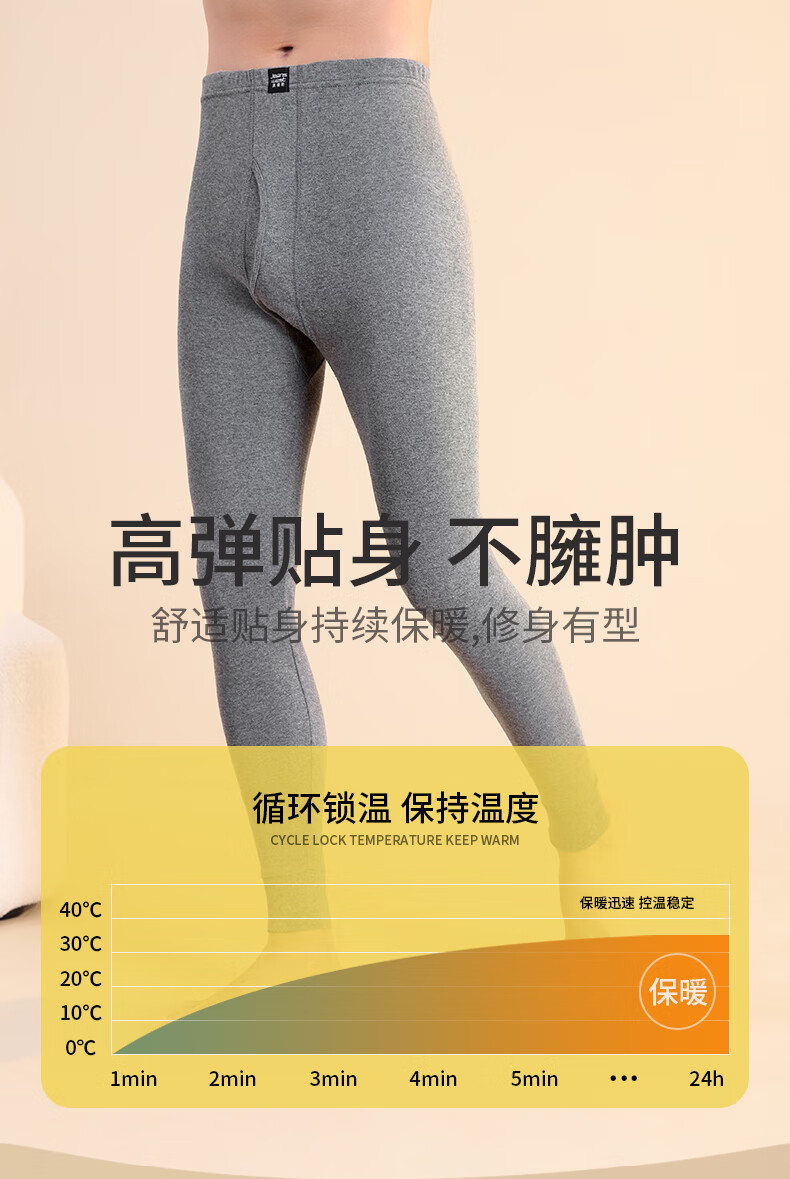 真维斯(JEANSWEST)男士纯棉保暖裤秋裤打底裤棉裤春秋薄款贴肤防寒100%纯棉保暖内衣