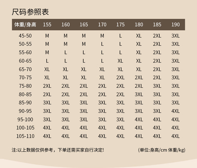 China (cm) 160-165/84-86 165-170 / 88-90 167-172 / 92-96 168-173 / 98-102 170-176 / 106-110