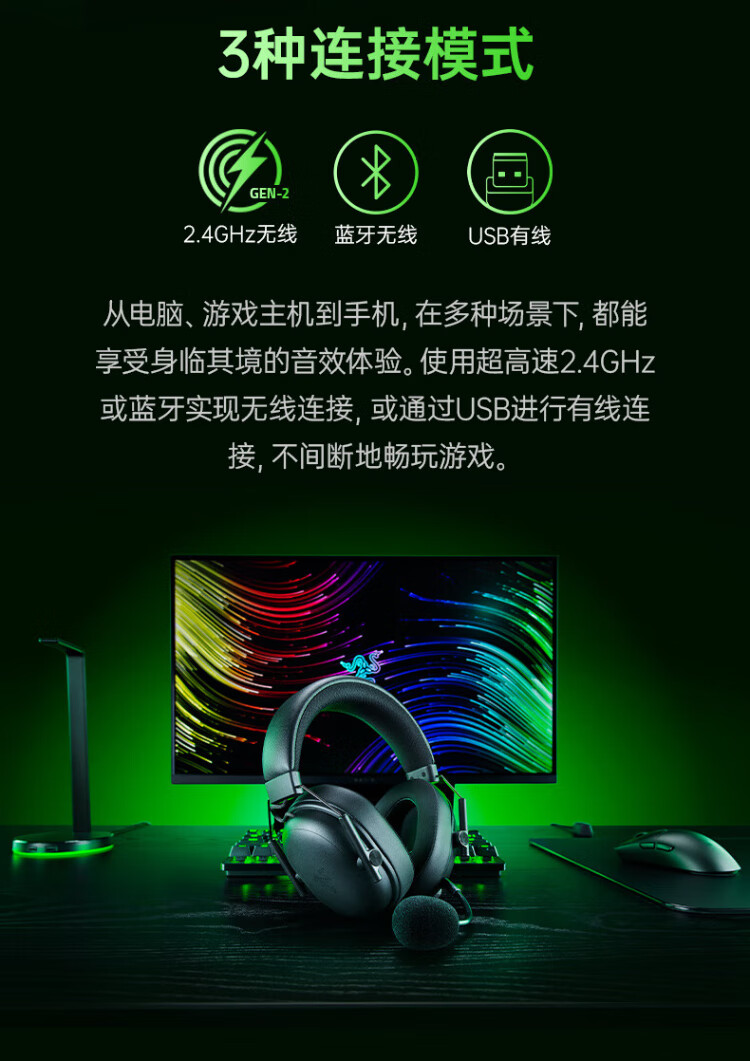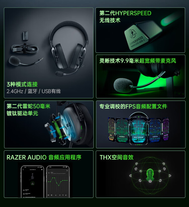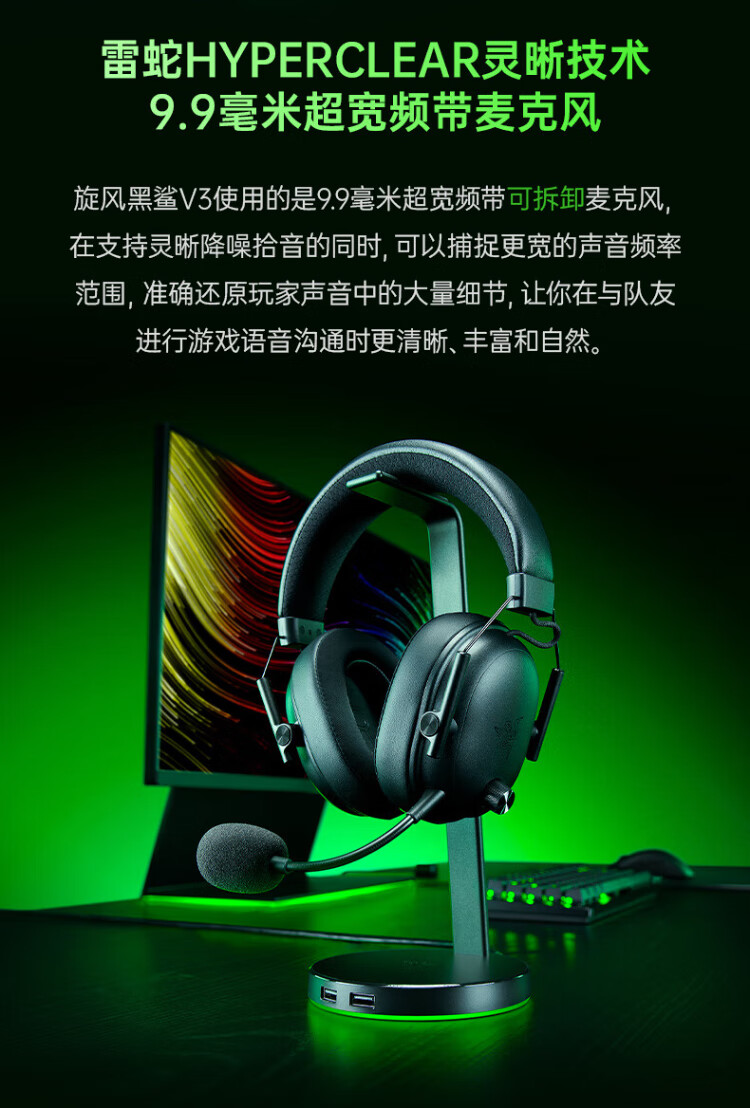 Razer Black Shark V3 wireless headset gaming headset, three-mode THX sound effect, detachable microphone, delta EQ adjustment, CSGO chicken white