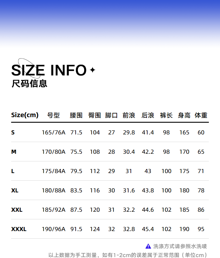 China(cm) 72-76 76-81 81-87 87-93 93-98